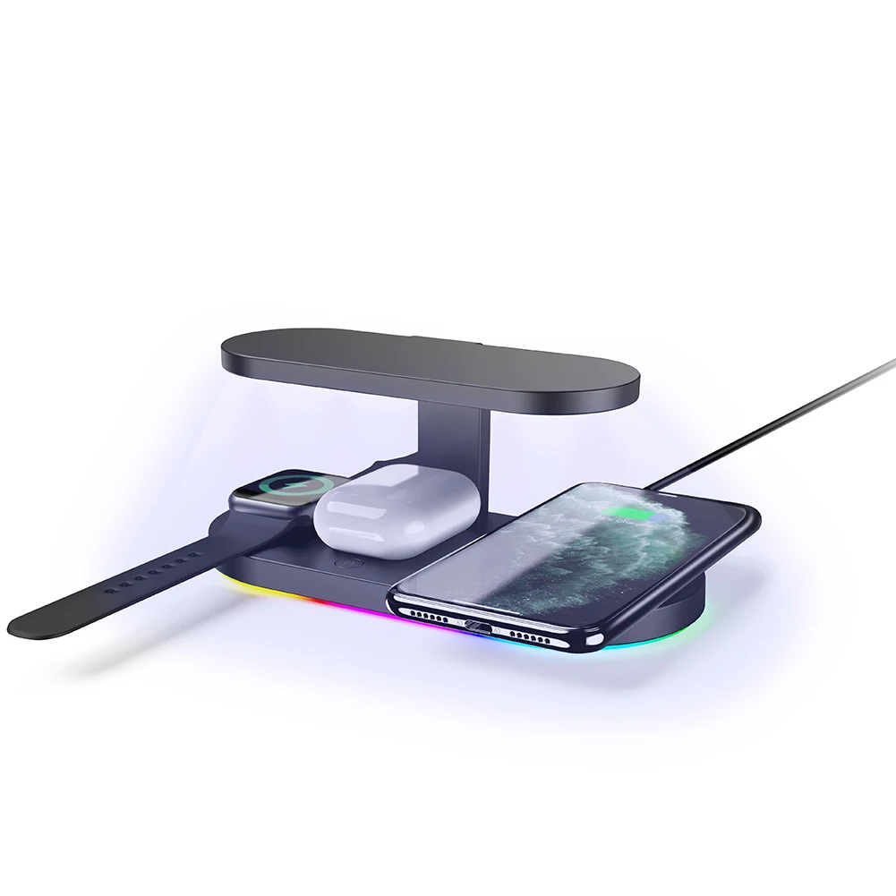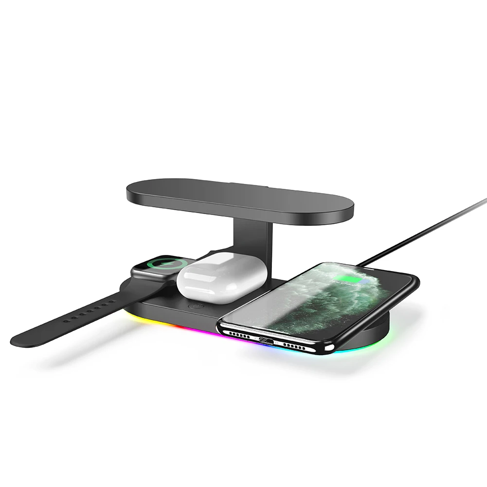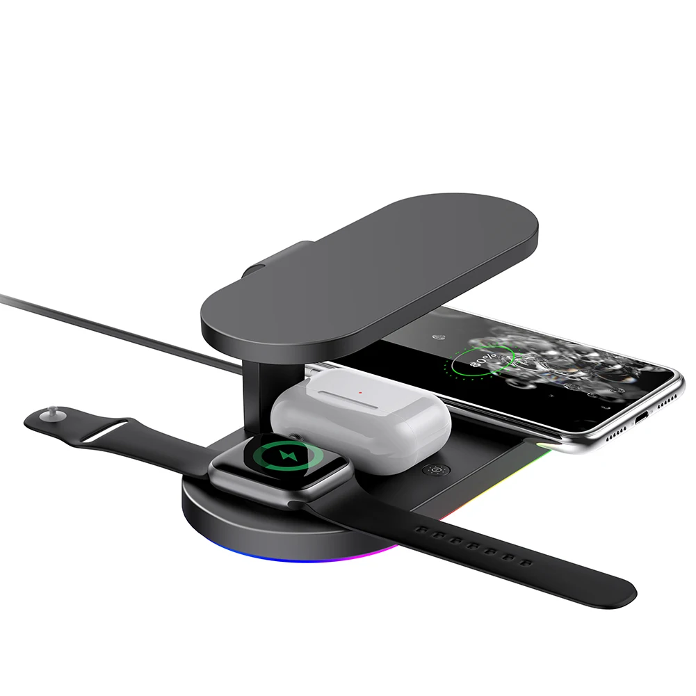 -Это новое многофункциональное Беспроводное зарядное устройство, которое может заряжать ваш мобильный телефон, часы, и оно идеально подходит для TWS и других трех устройств одновременно, тем самым улучшая эффективность зарядки.