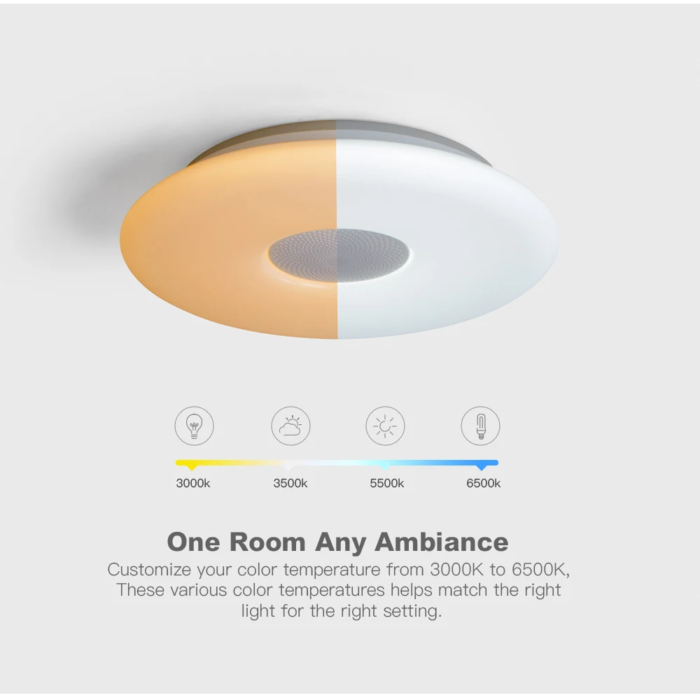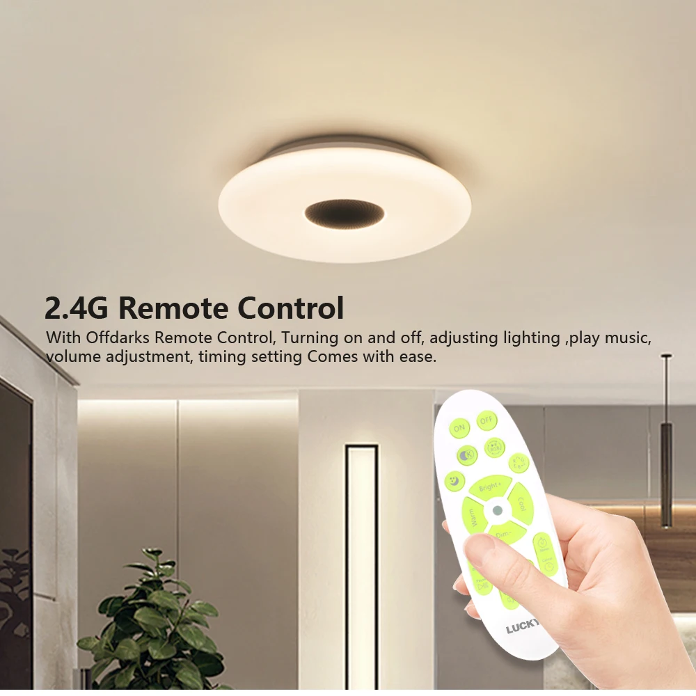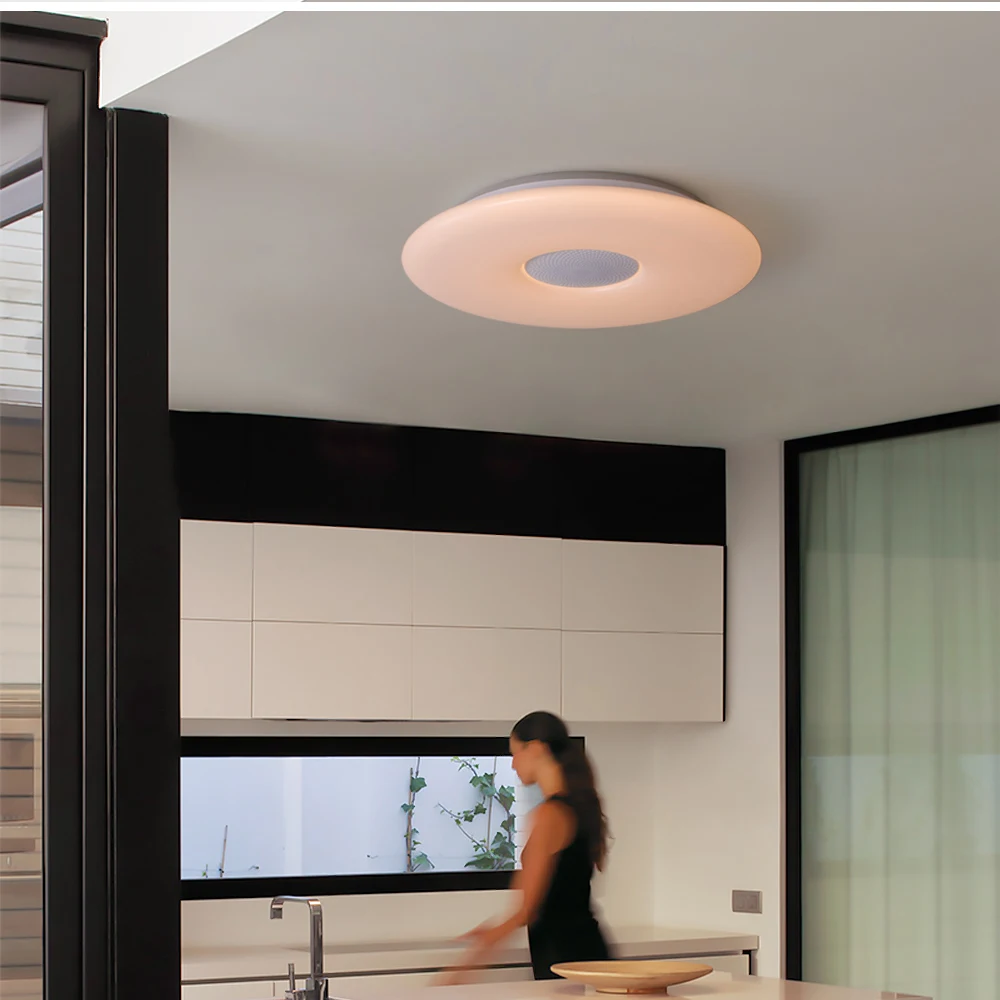 Основные характеристики ● WIFI умный потолочный светильник ● Переключатель синхронизации, переключатель задержки ● Управление мобильным приложением, поддержка голосового управления Amazon Alexa, Google home ● Выбор цвета DIY, Функция микрофона, функция музыкального режима ● Цветовая температура регулируется от 3000 К до 6000 К ● Регулируемая яркость и световой поток до 2700lm ● Тип программного обеспечения приложения: Magic Home Примечание ● Музыкальная версия имеет функцию анти-подключения Bluetooth. Если вы не хотите использовать динамик или ваш сосед подключен к Bluetooth, вы можете выключить bluetooth-динамик на пульте дистанционного управления. ● Пульт дистанционного управления не имеет аккумулятора, когда он покидает фабрику. ● Потолочные светильники offdarks, все продукты с поддержкой Wi-Fi Alexa и Google Home. Рекомендуемое пространство Подходит для: спальни/кухни/гостиной Рекомендуемая Площадь помещения: 8-15 ㎡ Размер изделия (Длина x Ширина x высота): 300x70. Мм