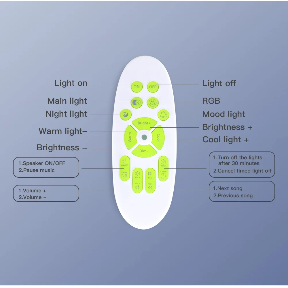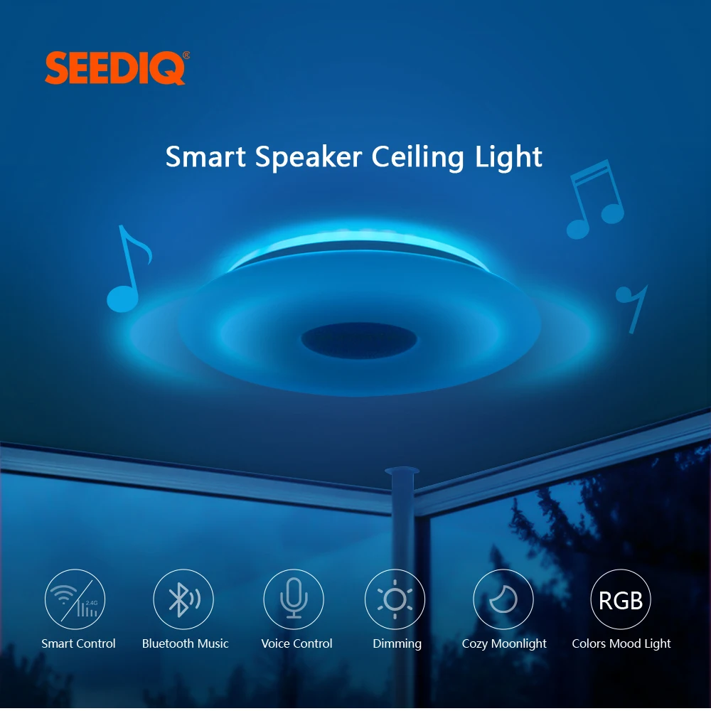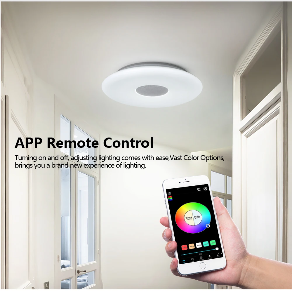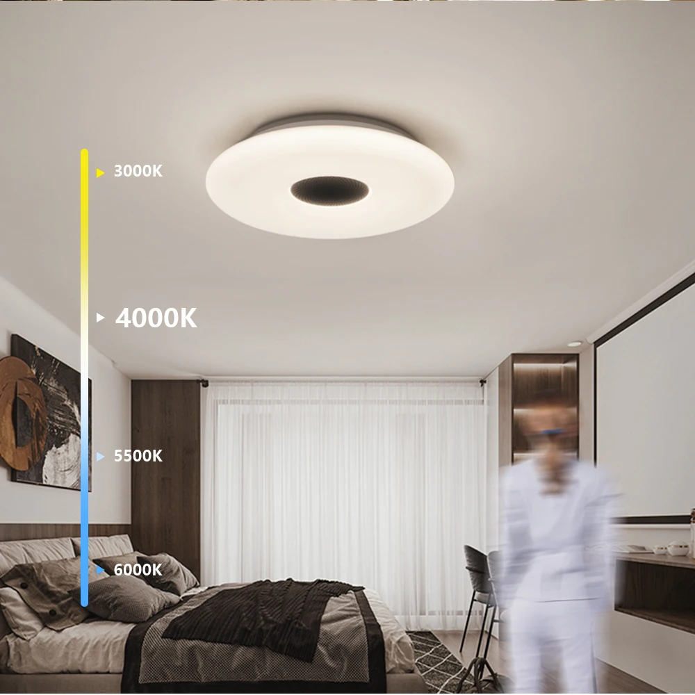 Основные характеристики ● WIFI умный потолочный светильник ● Переключатель синхронизации, переключатель задержки ● Управление мобильным приложением, поддержка голосового управления Amazon Alexa, Google home ● Выбор цвета DIY, Функция микрофона, функция музыкального режима ● Цветовая температура регулируется от 3000 К до 6000 К ● Регулируемая яркость и световой поток до 2700lm ● Тип программного обеспечения приложения: Magic Home Примечание ● Музыкальная версия имеет функцию анти-подключения Bluetooth. Если вы не хотите использовать динамик или ваш сосед подключен к Bluetooth, вы можете выключить bluetooth-динамик на пульте дистанционного управления. ● Пульт дистанционного управления не имеет аккумулятора, когда он покидает фабрику. ● Потолочные светильники offdarks, все продукты с поддержкой Wi-Fi Alexa и Google Home. Рекомендуемое пространство Подходит для: спальни/кухни/гостиной Рекомендуемая Площадь помещения: 8-15 ㎡ Размер изделия (Длина x Ширина x высота): 300x70. Мм
