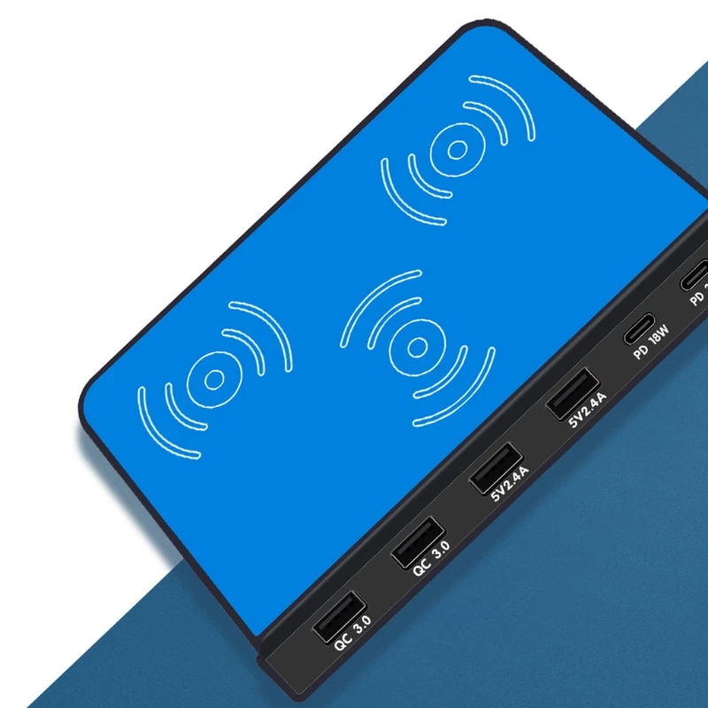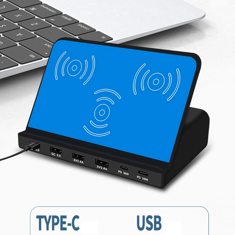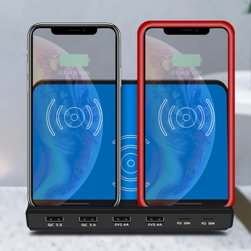 6 портов 30 Вт Тип C PD QC3.0 USB быстрое зарядное устройство 10 Вт Беспроводная зарядная станция
