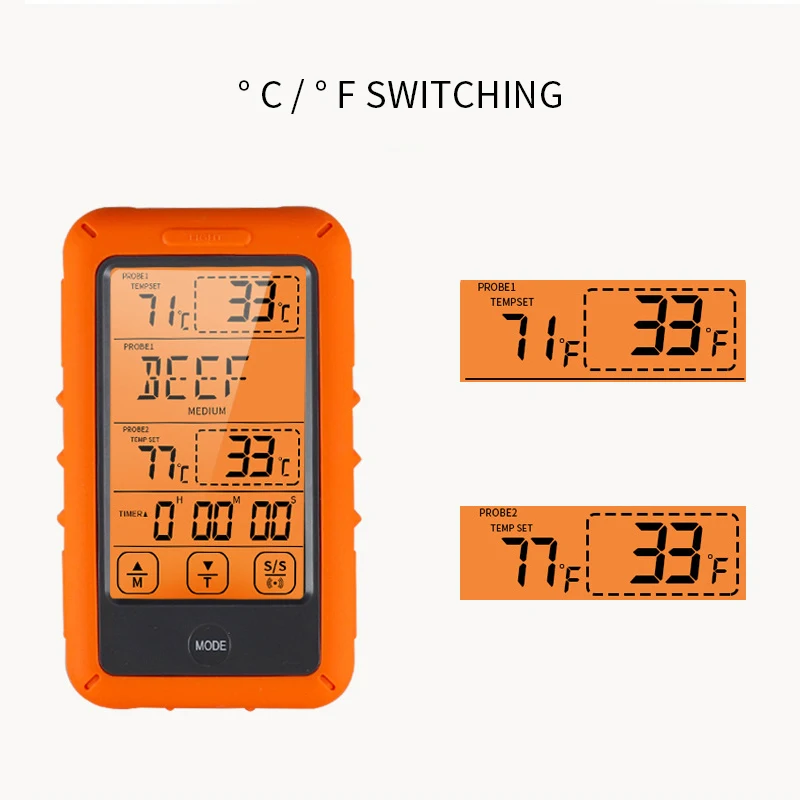 <Функция таймера: термометр для приготовления пищи имеет функцию подсчета и обратного отсчета, которая идеально подходит для длительного приготовления пищи; Приемник будет звуковой сигнал и мигать, как только достигнет заданной температуры