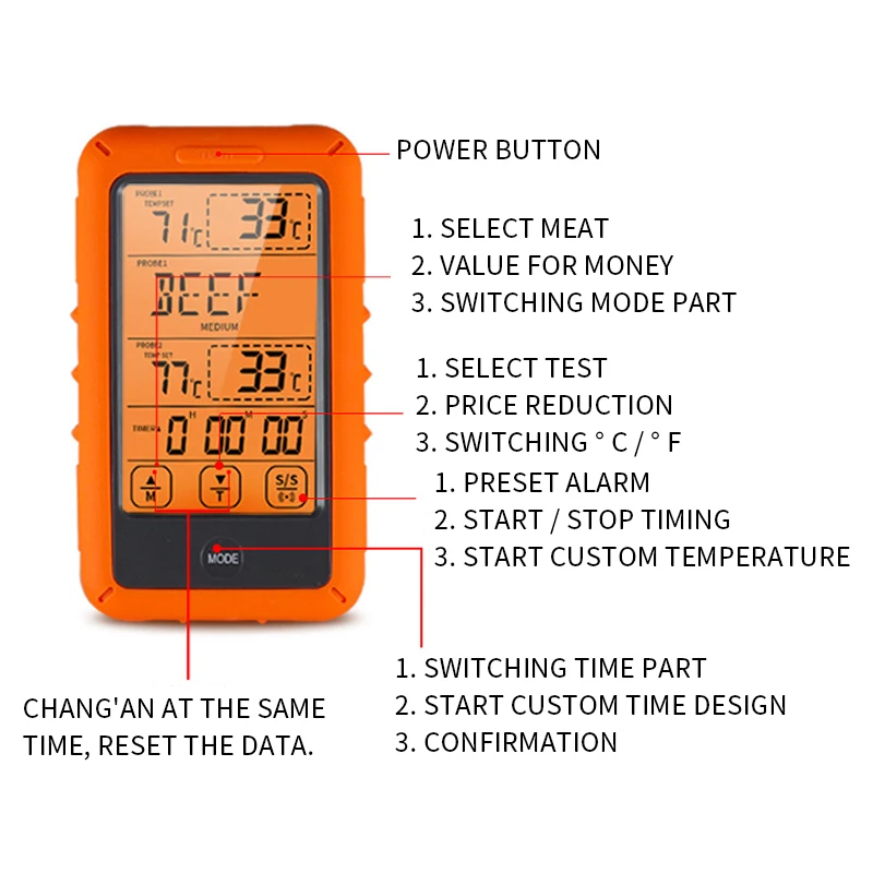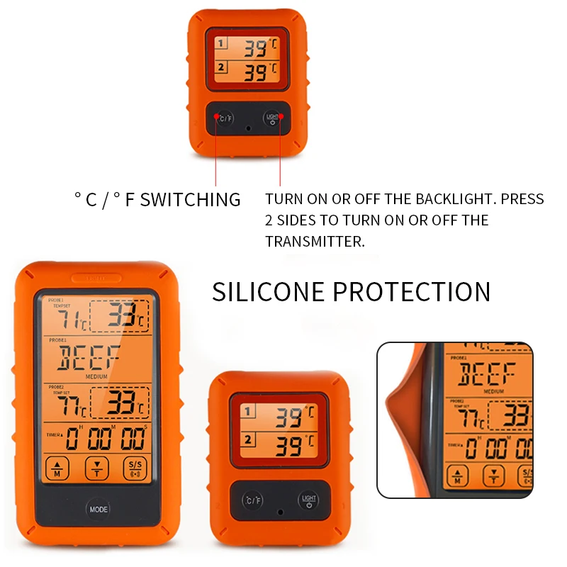 <Hands free monitor: беспроводной цифровой термометр для мяса с двойным зондом контролирует питание или духовку/гриль/курильщик, позволяя вам наслаждаться вашей компанией, не снимая с себя