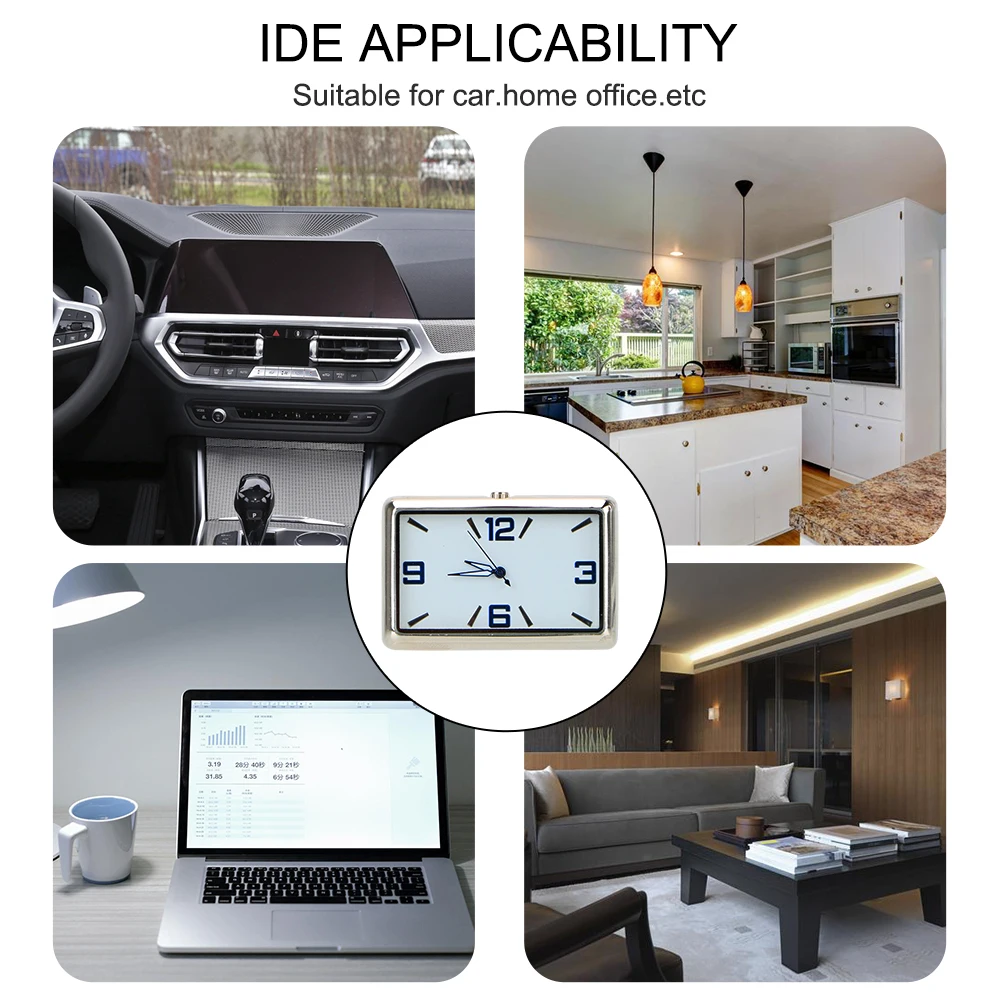 Материал высокого качества: автомобильные Часы изготовлены из высококачественной нержавеющей стали и ФАП материала. Прочный, не выцветает, ударопрочный, устойчивый к вибрациям и прочный. Простота установки: автомобильные часы с наклейкой, могут не только застревать в автомобиле, но и приклеиваться к любому желаемому месту, например, в офисе. Супер удобство: эти автомобильные часы с вентиляционным отверстием позволяют вам узнать время при вождении без взгляда на ваши часы или мобильный телефон, что обеспечивает более безопасное вождение. Модный стиль: автомобильные часы простой квадратной формы и одного цвета, что является минимализмом и модой для украшения вашего автомобиля. Материал:Кварцевый камень + нержавеющая сталь Аккумулятор:Встроенный1 батарейка с кнопкой (входит в комплект) Размер: как на картинке Посылка в комплект входит: 1 xАвтомобильные часы 2 xДвусторонняя наклейка