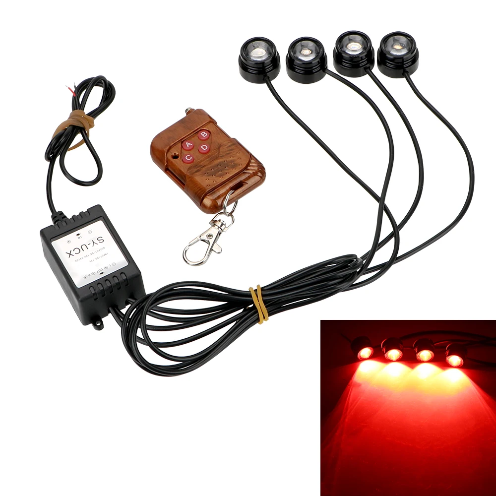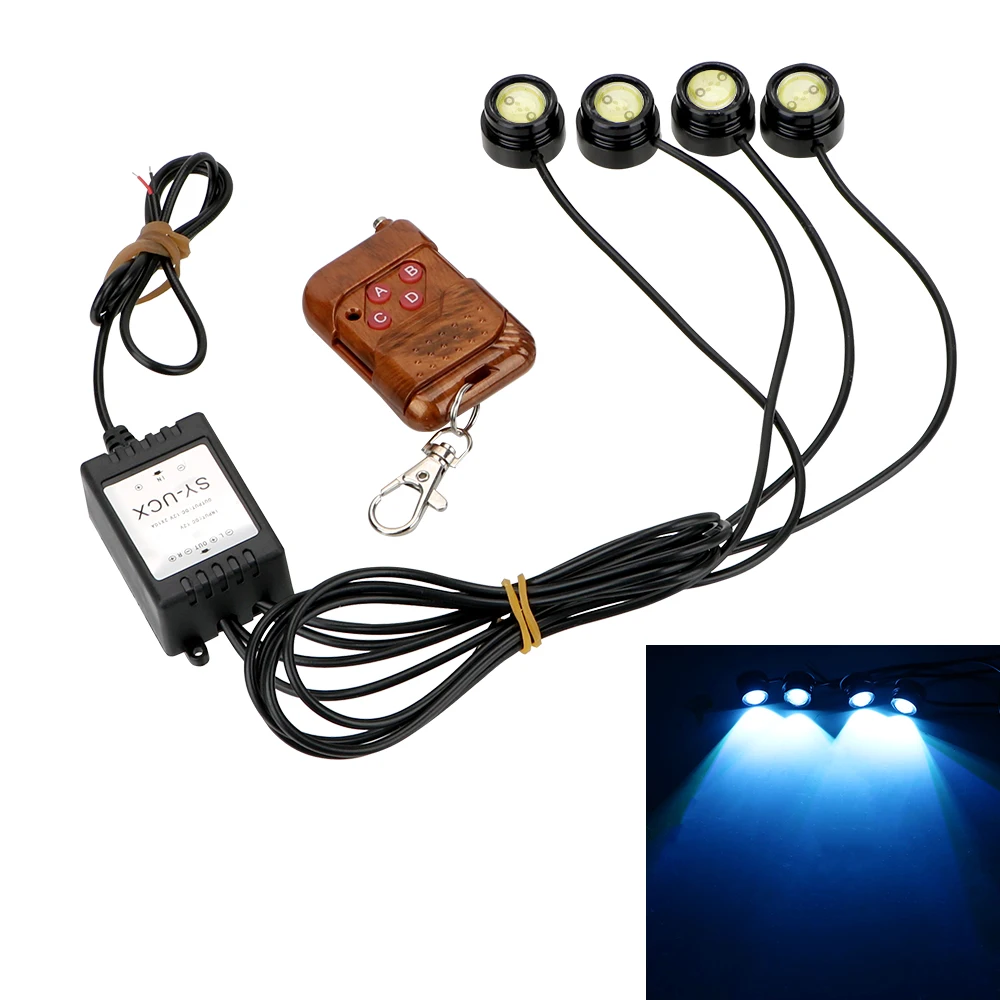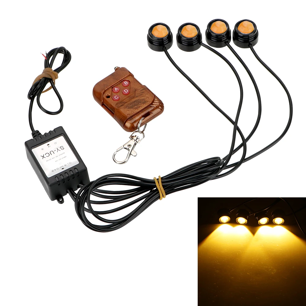 Посылка включает в себя: 1 *4 в 1 светодиодный автомобильный светильник с орлиным глазом 1 *Пульт дистанционного управления