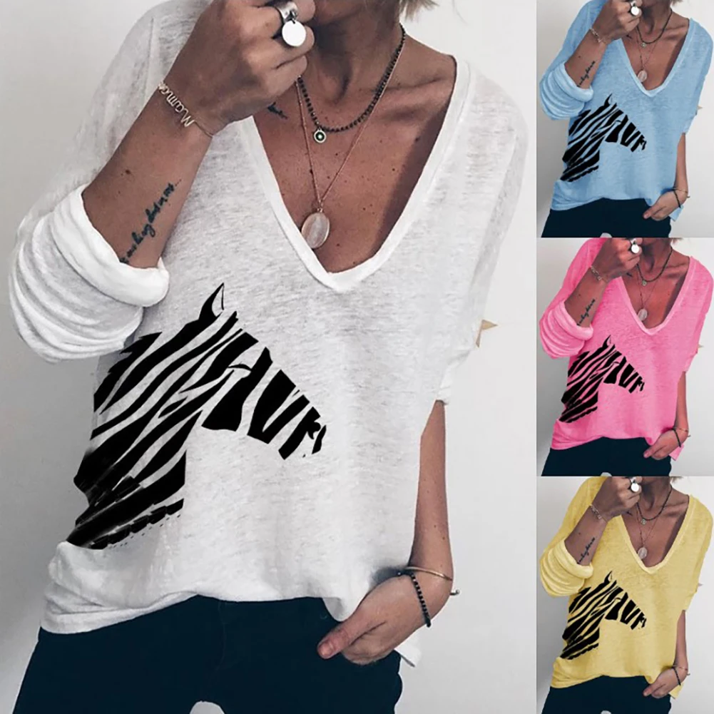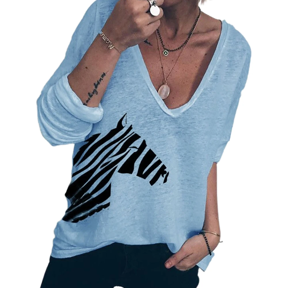 Women Casual Autumn Long Sleeve Zebra Print Loose T-shirt Blouse Top Streetwear