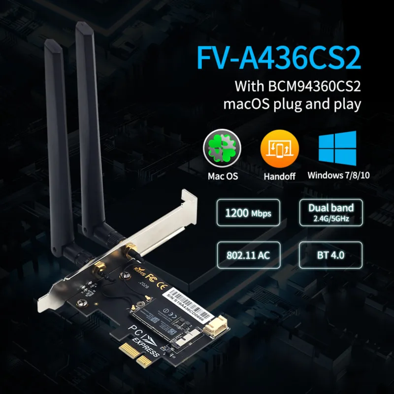 1750 Мбит/с PCIe настольная Wifi карта bcm9360cd для macOS Hackintosh