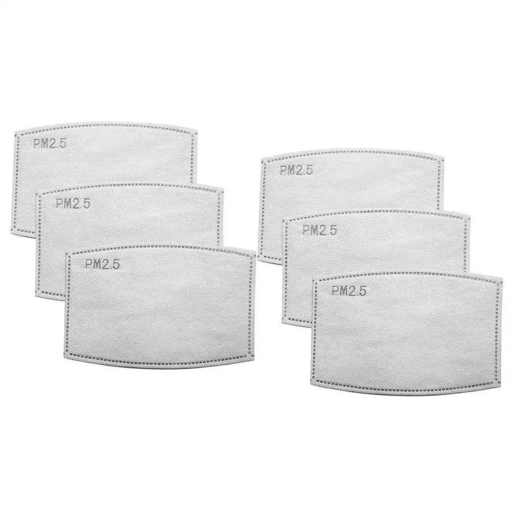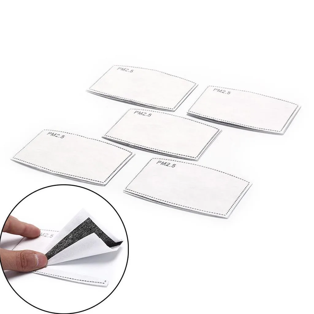 Пять слоев фильтрации воздушных масок PM2.5 100 шт. маски, рекомендуется заменять флитеры каждую неделю использования для лучшего эффекта PM 2,5, идеально подходит для защиты рта и лица от пыли, дымки, загрязнения, золы, пыльцы, садоводства, ремесел Fliters Размеры: 12x 8 см/4,72 ''x 3,15'' подходят для всех детей маска для лица с внутренней отделкой с фильтром слотПосылка Содержание: