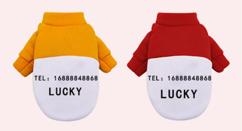 Материал: хлопок и флис Цвет: красный, желтый Характеристики: XS / S / M / L / XL / XXL Описание: зимняя теплая толстовка для маленькой собаки для Тедди, чихуахуа, померанского, пуделя, бишон фризе, Питбуль бульдог маленьких собак Мы можем напечатать имя вашей собаки и номер телефона в одежде Пожалуйста, обратите внимание: не забудьте оставить нам имя вашей собаки и номер телефона после оформления заказа, в противном случае мы отправим вам чистая одежда. * Образцы: * Лаки * 16888848868