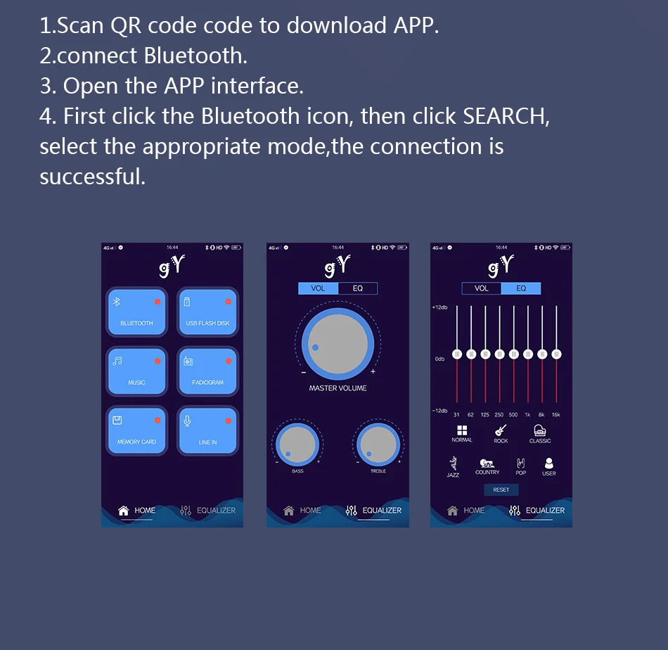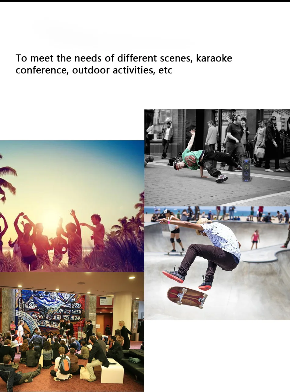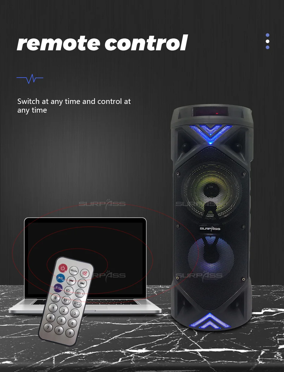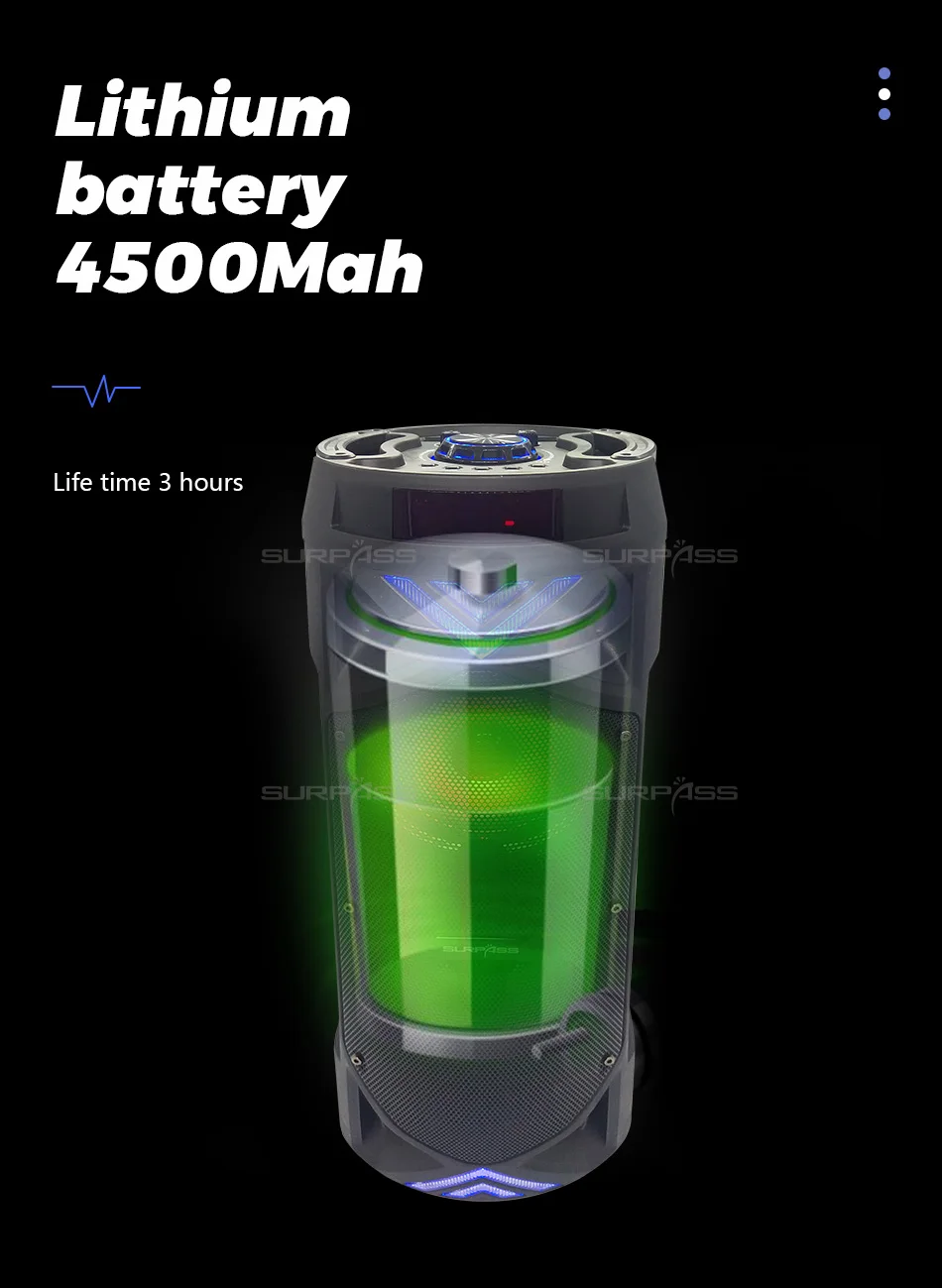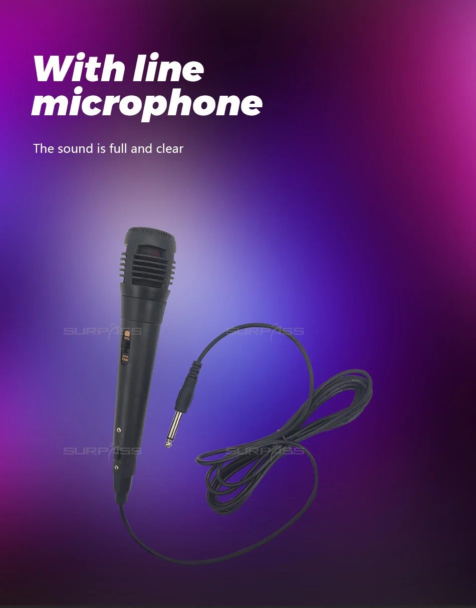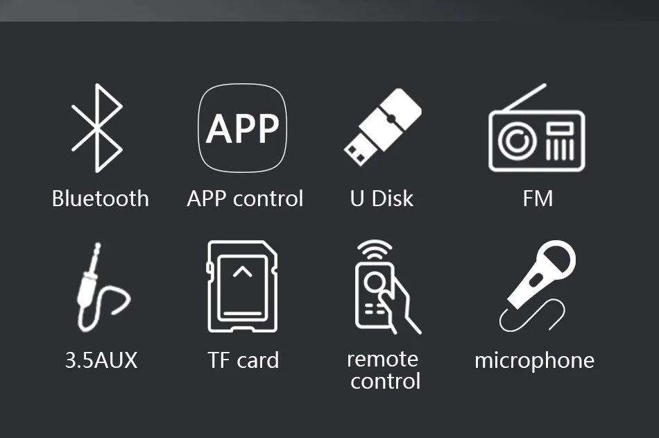 ● Функция: Bluetooth, управление мобильным приложением, эквалайзер, u-диск, tf-карта, 3.5AUX, fm-радио, Mp3, один проводной микрофон, караоке, светодиодный светильник, пульт дистанционного управления
