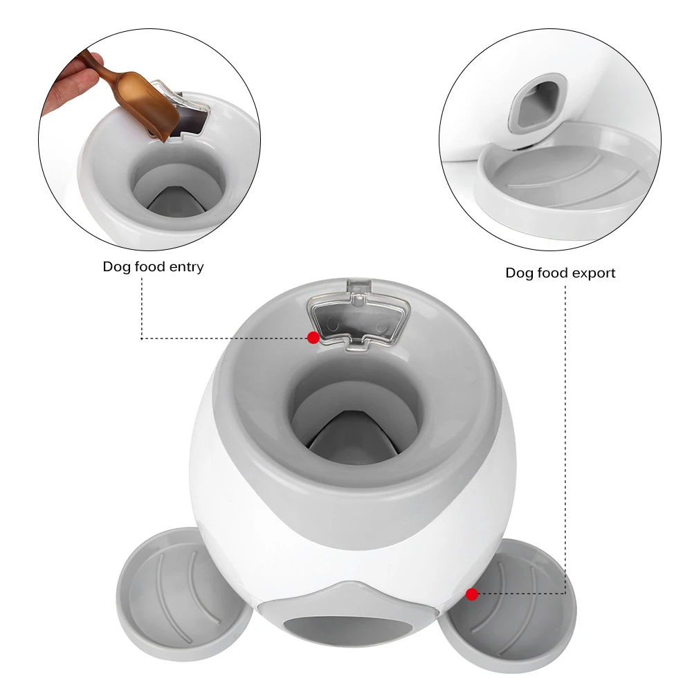 Когда ваша собака вставляет мяч, после запуска, еда будет выходить автоматически.