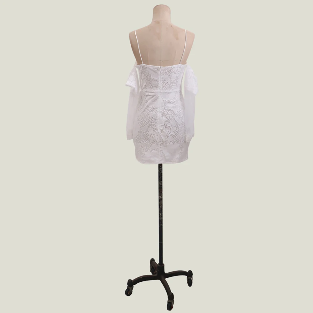 Женское сексуальное платье с открытыми плечами на тонких бретельках, кружевное вечернее мини-платье для банкета