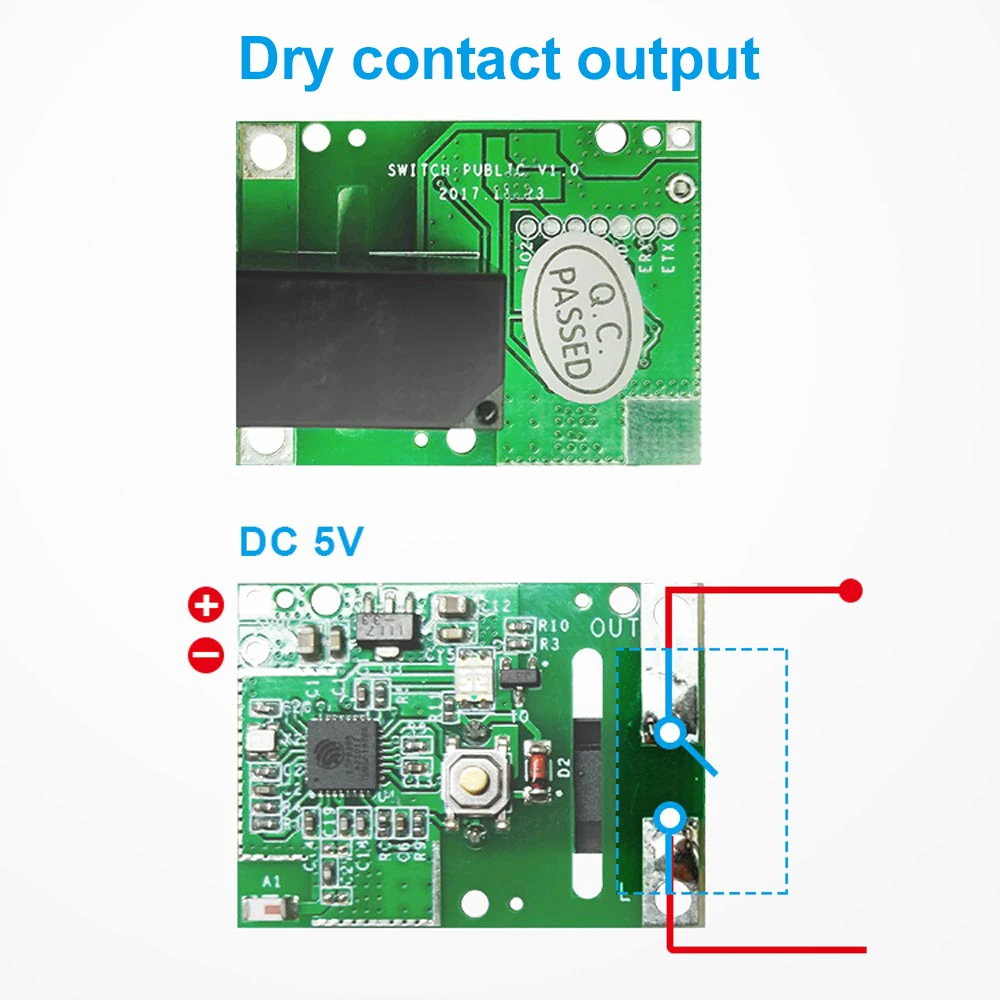 Когда модуль переключается в режим инчинга, пользователи могут нажать кнопку включения/выключения для включения или выключения подключенного устройства. Есть два способа подключения для выбора: