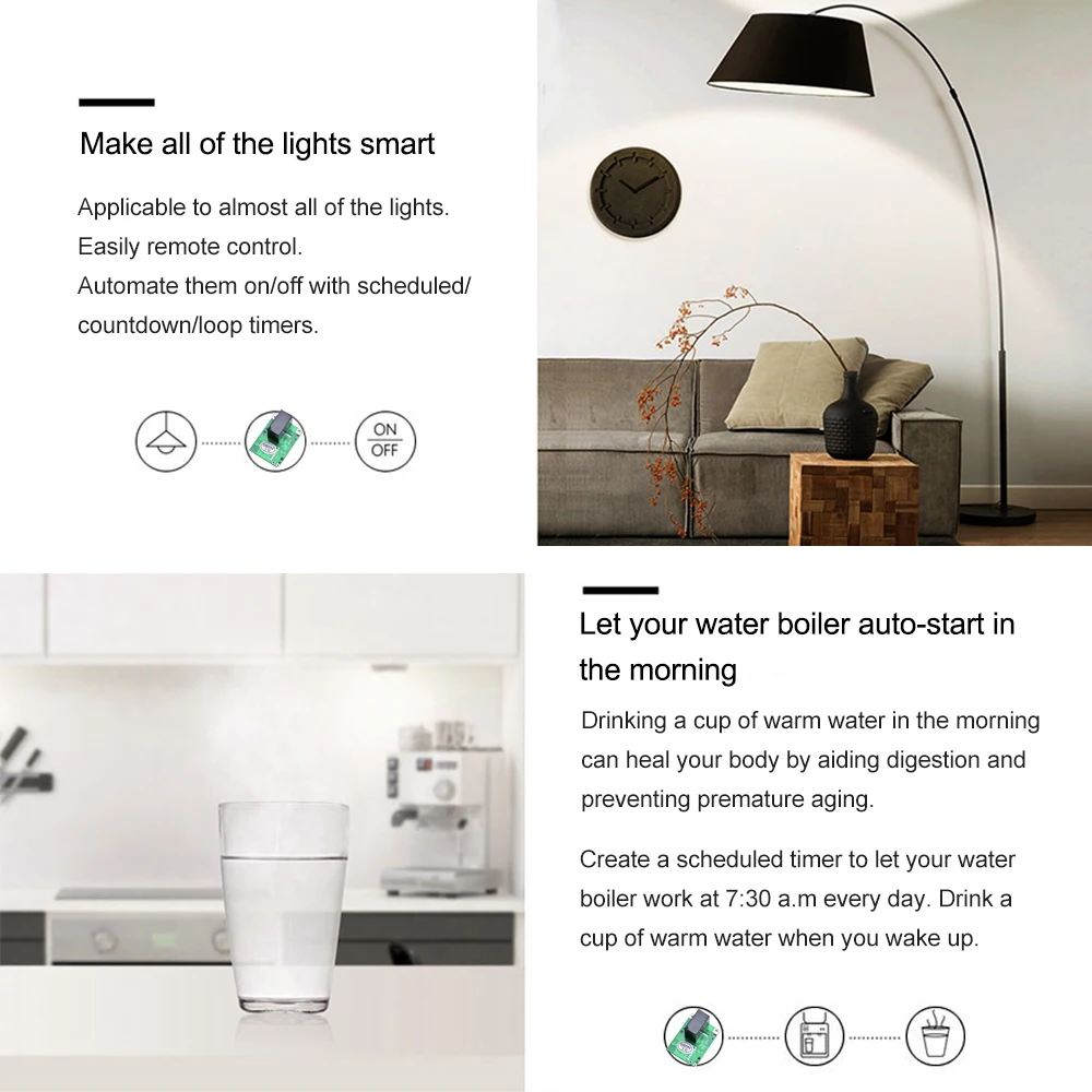 Входное напряжение 5 В постоянного тока, нано-размер и сухой контакт делают его отличным от традиционного продукта SONOFF, этот продукт является беспроводным переключателем, поддерживающим режим инширования/самоблокирования. Пользователи могут добавить устройство в приложение eWeLink для удаленного управления подключенными бытовыми приборами или устройствами.