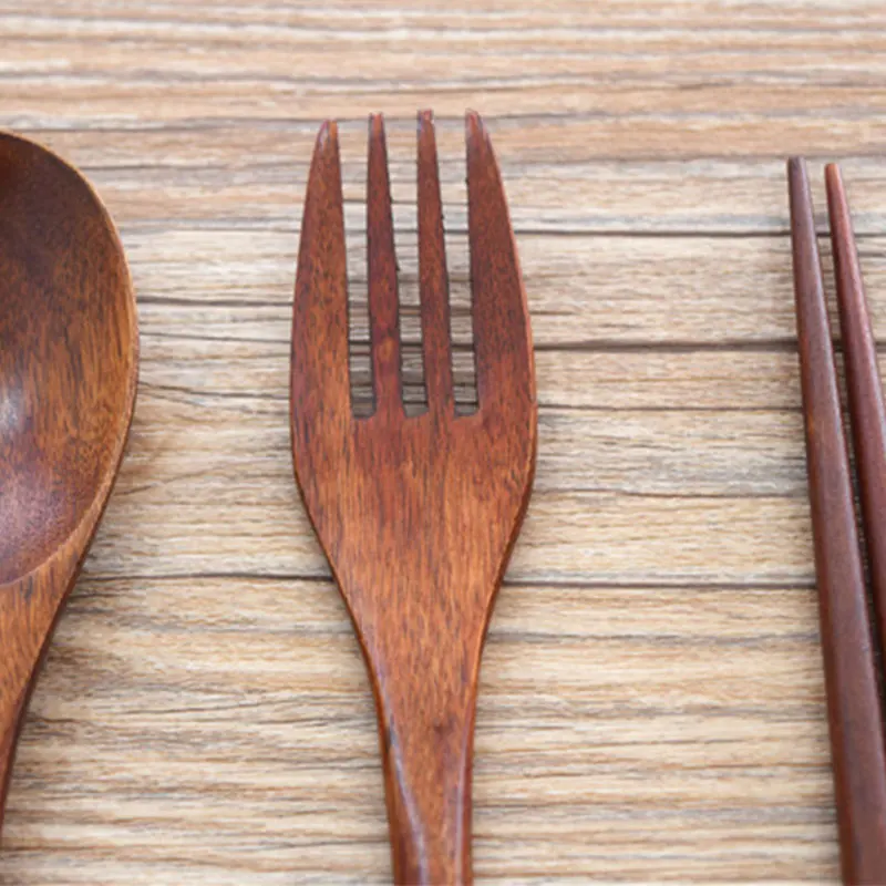 Размер: ложка: 22,5*3,8 см; Вилка: 22,5*2,7 см; Палочки для еды: 22,5*1,6 см; Тканевый мешок: 26*6 см; Веревка: 20 см
