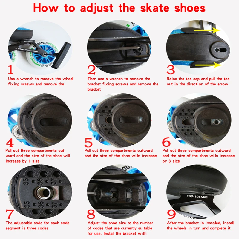 Размер S : EU30 ~ 33 (длина стопы 18,5-20 см) -- 350 мм лопатка для льда Размер М: EU34 ~ 37 (длина стопы 20,5-22,5 см) --- подача заявки на 380 мм лопатка для льда