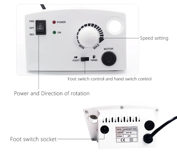 5. Ножная педаль, чтобы свободные руки. Нажмите ножной переключатель и шаг на педаль, тогда двигатель будет работать. Нескоростной регулируемый, всего 35000RPMforeverlily
