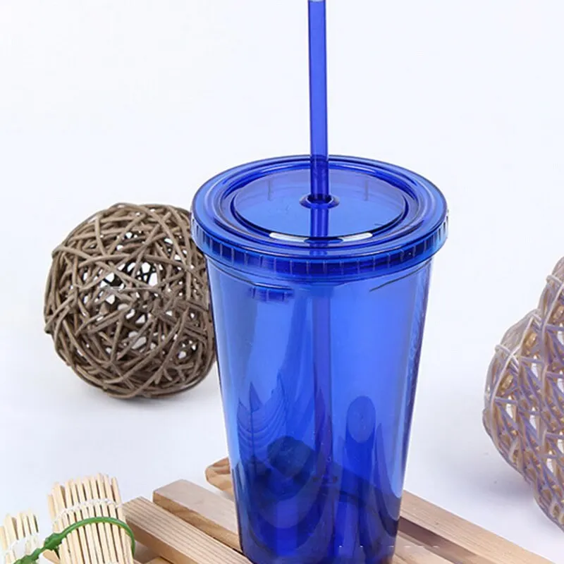 1. Новый пластиковый стакан с крышкой и соломой, большое отверстие для легкого наполнения кубиков льда или любых напитков.