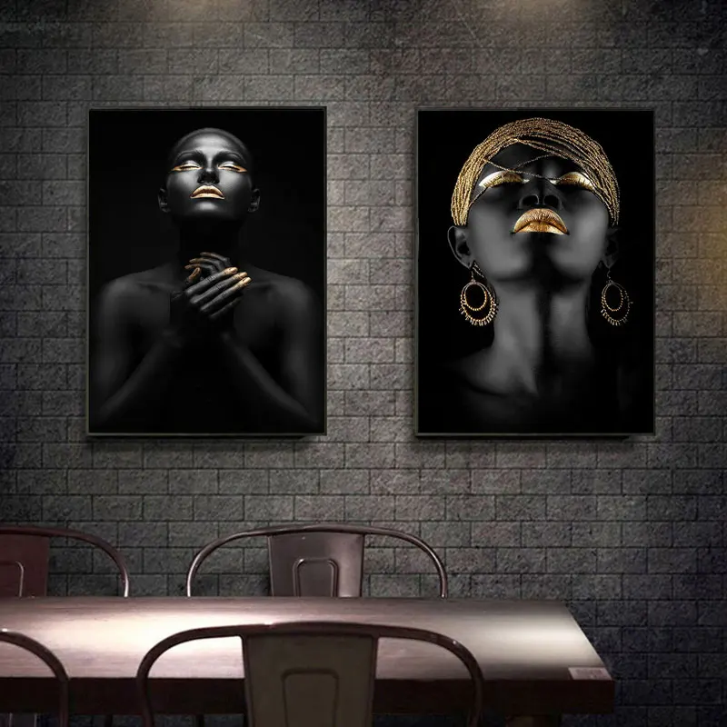 Современные золотые и черные африканские женские холщовые картины, настенные художественные модные открытые девушки, сексуальные печатные Плакаты для гостиной, домашнего декора