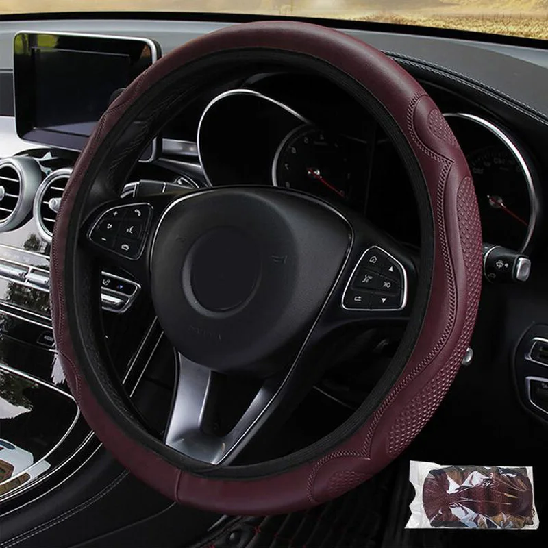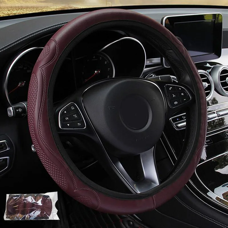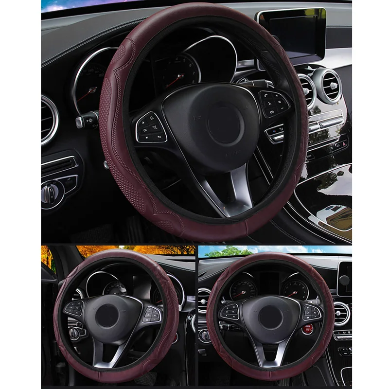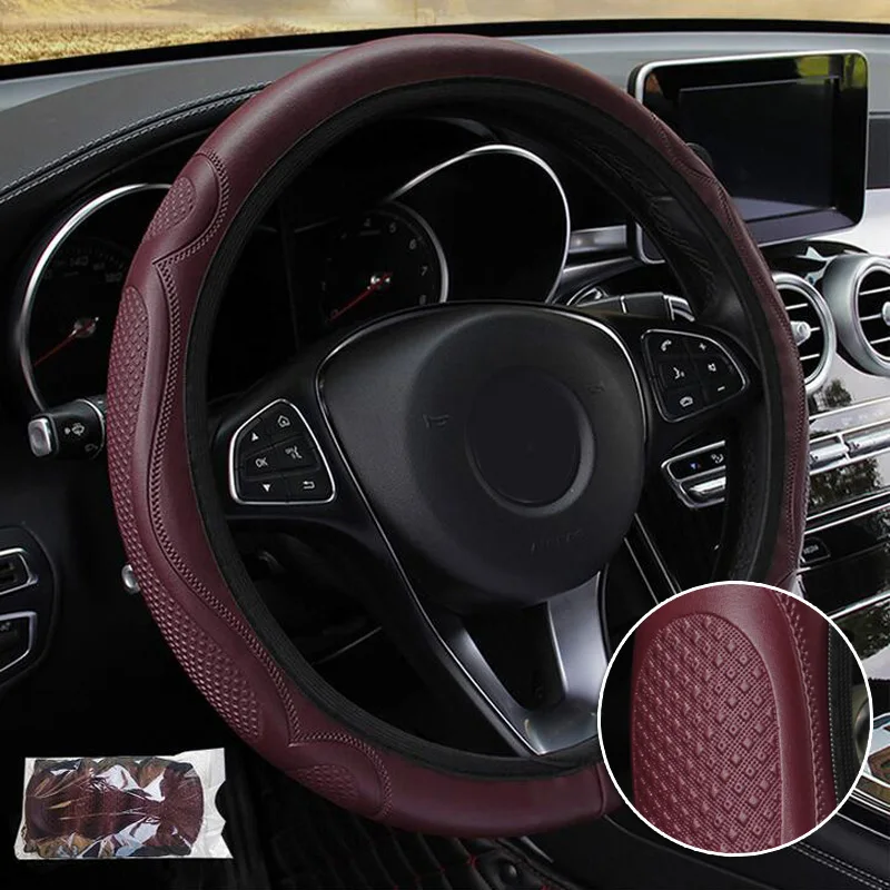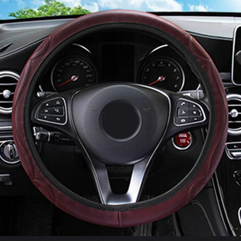 * Противоскользящий чехол на руль из тисненой кожи для автомобиля