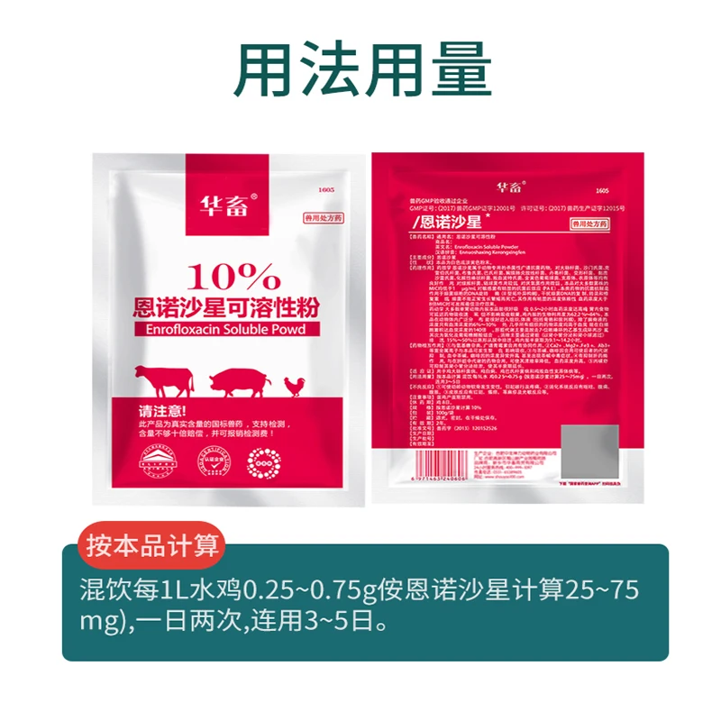 Бренд: HuaXu 1) китайский бренд ветеринарной медицины № 1, 2) с долей рынка 60%, 3) предоставляет услуги 1 миллиону потребителей Каждый год, 4) его качество соответствует стандарту ветеринарной медицины. Количество покупки: 100 г/пакет Срок годности: 05,2022 1. Собаки и кошки Продукт показан в ходе лечения бактериальных инфекций алиментарных, респираторных и урогенитальных путей, кожи, вторичных рановых инфекций и отита, где клинический опыт, поддерживается, где это возможно, путем тестирования чувствительности причинного организма, указывает на enrofloxacin как лекарство на выбор. 2. Крупный рогатый скот Болезни дыхательных и алиментарных путей бактериального или микоплазмального происхождения (Е. g. Пастереллез, микоплазмоз, coli-bacillosis, coli-septicaemia и сальмонеллез) и вторичные бактериальные инфекции после вирусных условий (e.g. Вирусная пневмония), где клинический опыт, поддерживается, где это возможно, путем тестирования чувствительности повседневного организма, указывает на enrofloxacin как лекарство на выбор. 3. Свиньи Болезни дыхательных и алиментарных путей бактериального или микоплазмального происхождения (Е. g. Пастереллез, актинобациллиз, микоплазмоз, коли-бациллоз, коли-септикаемия и сальмонеллез) и мулифакторные заболевания, такие как атрофический ринит и ферзоотическая пневмония, Где клинический опыт, поддерживается, где это возможно, путем тестирования чувствительности повседневного организма, указывает на enrofloxacin как Выбор лекарств.
