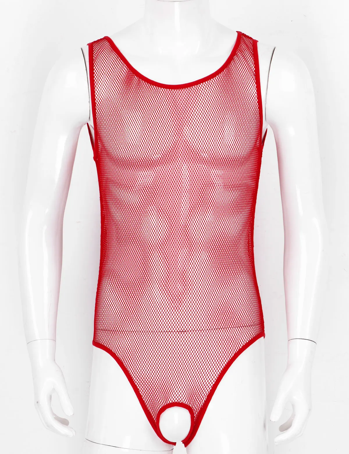 Просвечивают Сетчатый Дизайн, без рукавов, декольте и открытая промежность, хорошо показывают мышцы.