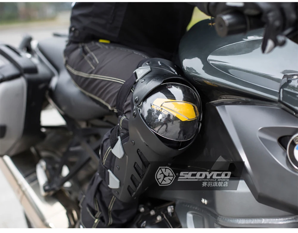 Наколенники для мотоциклистов SCOYCO-K12-White/зеленый/Желтый и черный цвет