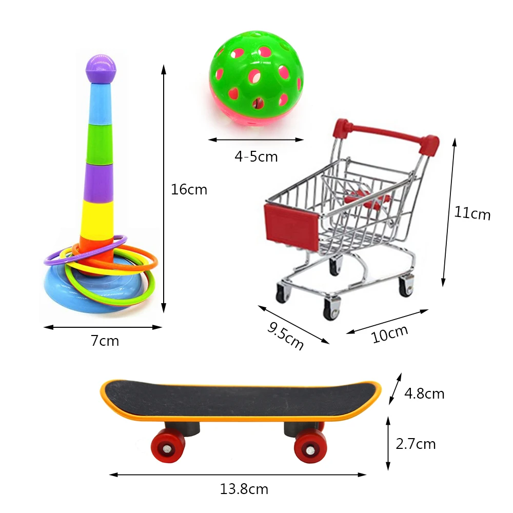 Size: Skateboard 13.8x4.8x2.7cm, cart 11x9.5x10cm, bell 4-5cm