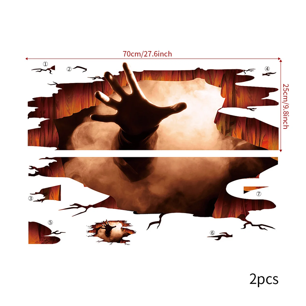 3D Halloween Wall Decals, Escape from Hell DIY Wall Stickers for Home Living Room Decor Features: -- A nice holiday gift for your family and friends. -- Let them to enjoy the atmosphere of Halloween. -- Enjoy eye-catching mural anytime. Specification: Material: PVC Color: Multi-color Style: Stylish Instructions: 1, Clean the surface before the sticking wall decals. Ensure the surface is smooth, clean and dry. 2, Peel wall decals from the backing paper. 3, Stick in accordance with the picture, or DIY in your own idea. 4, Then stick wall decals slowly and firmly from the top to the bottom. 5, Ensure that the entire wall decals make contact with the wall and that no air bubbles are trapped beneath the wall decals. Package Included 2Pcs/Set x Wall Stickers Promise If the product has any quality problems, please feel free to contact us, we will help you solve the problem as quickly as possible.