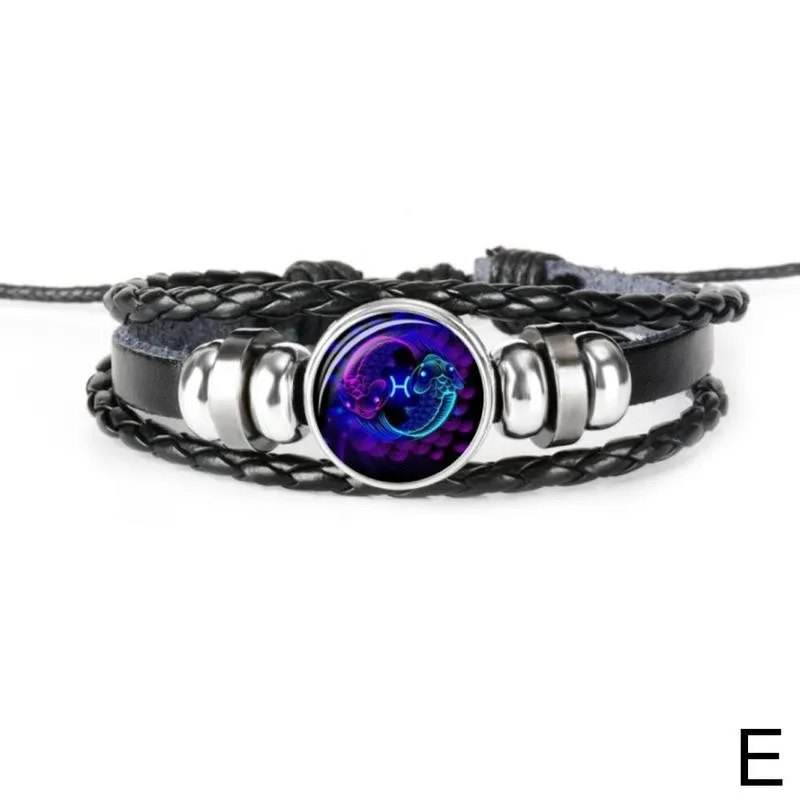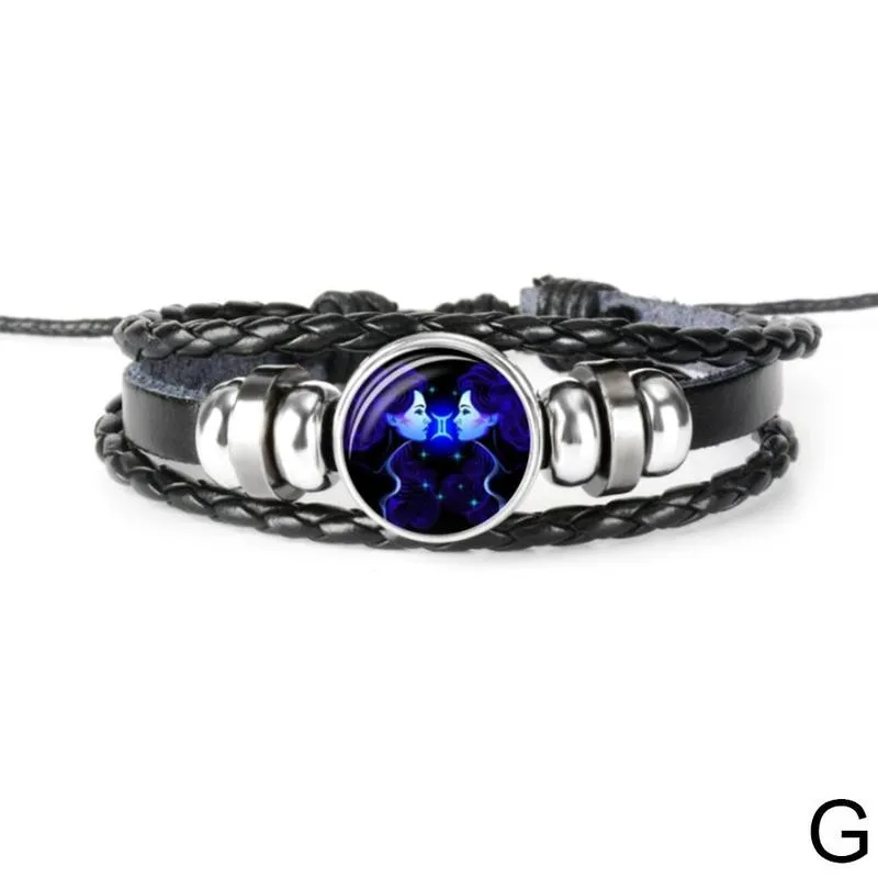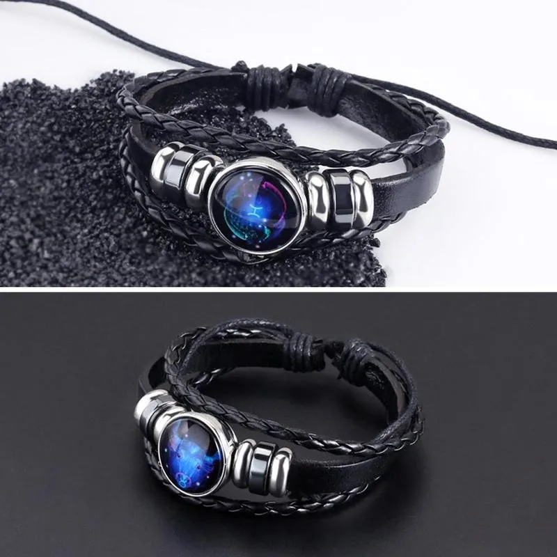 12 Созвездие браслет Знак зодиака Кожаный Браслет Близнецы Рак Лев стекло ювелирные изделия панк для мужчин женщин браслет Знак зодиака