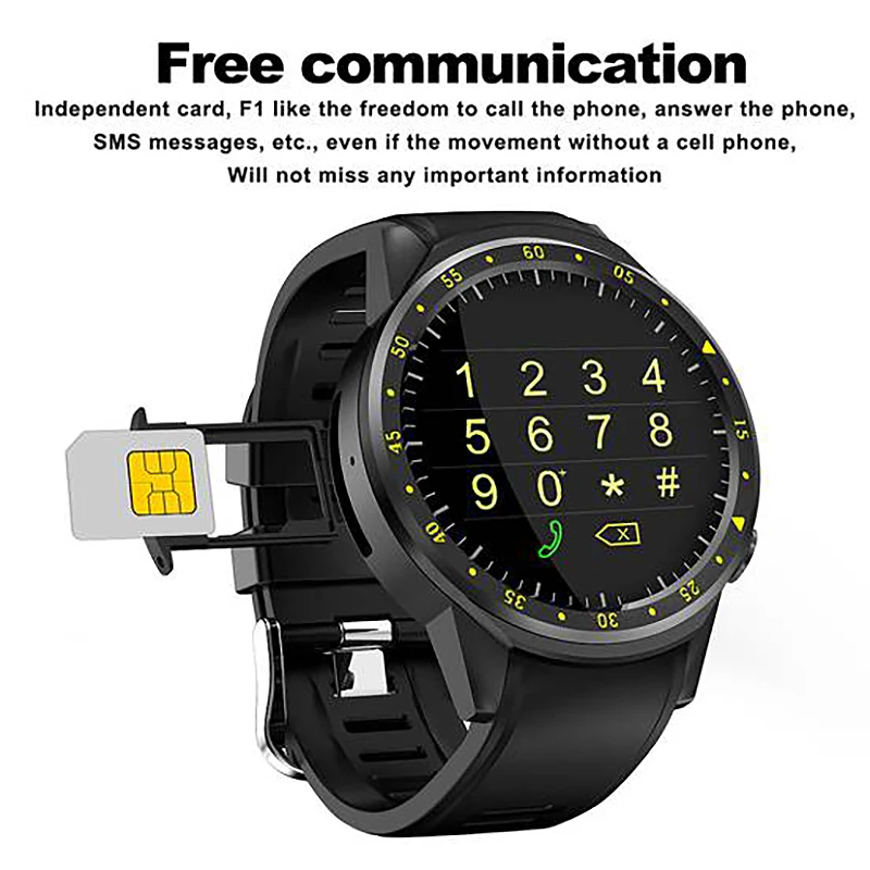 F1 смарт-часы, GPS часы, трекер сердечного ритма, мужские умные часы, мульти-спортивный режим, сим-карта, Peeter для телефонов Android Ios, черный