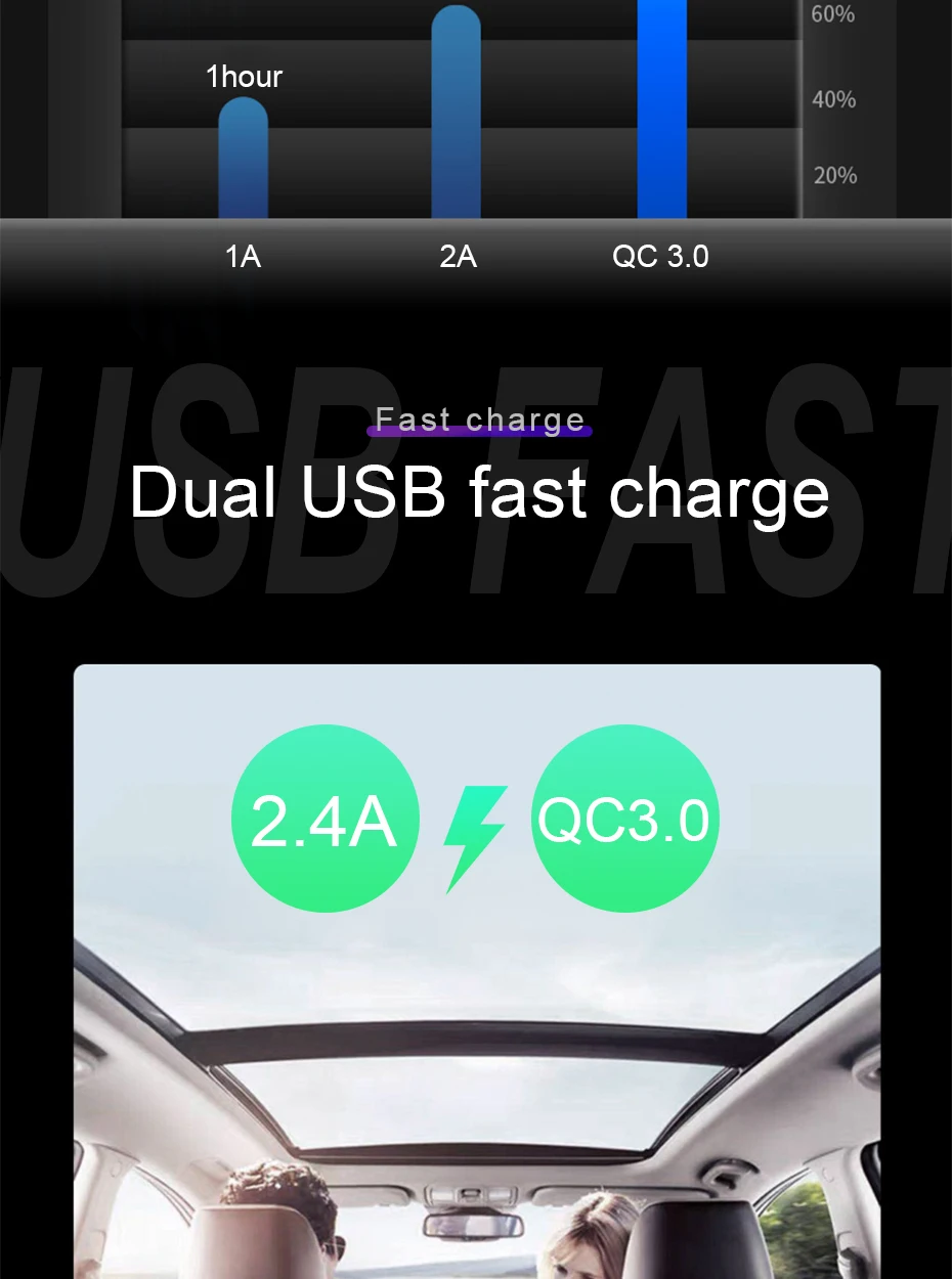 Двойной usb-порт и 2 гнезда прикуривателя 】 2 usb-порта для зарядки s с общим макс. 3,1 А. Выходной ток мощности 120 Вт позволяет быстро заряжать несколько устройств. 2 гнезда автомобильного прикуривателя может поставлять питание для 4 устройств одновременно, таких как мобильный телефон, GPS, видеорегистратор, подогреватель сидений, кулер, портативный пылесос или другие портативные приборы в вашем автомобиле