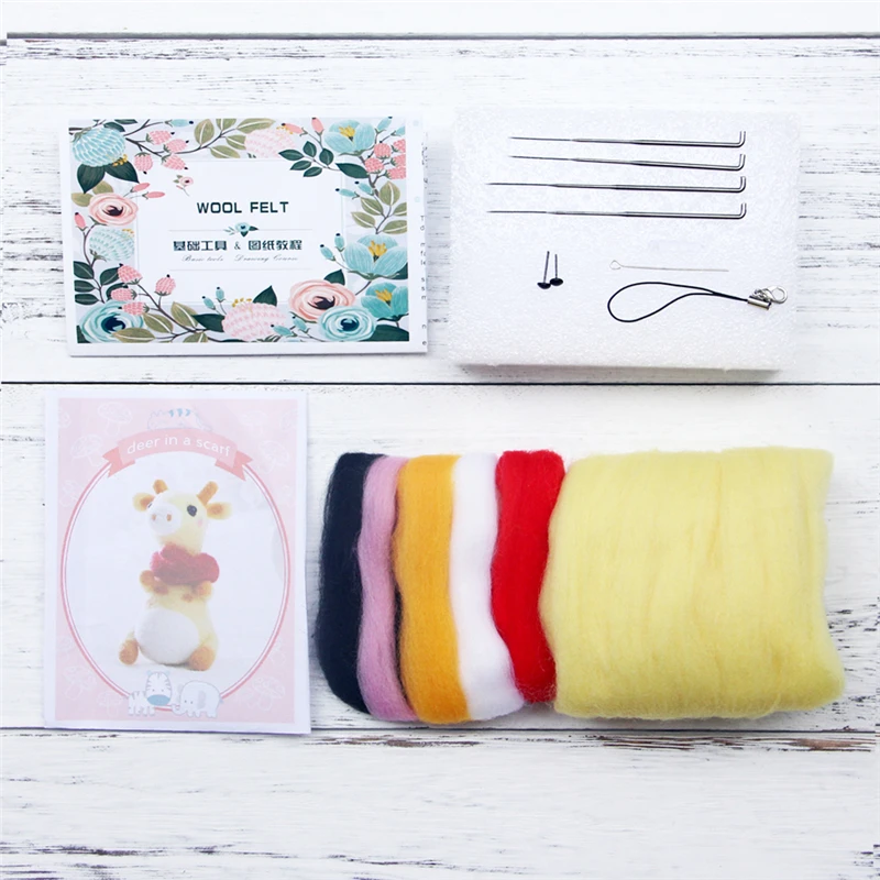 2 шт. глаза 1 шт. x пенопластовый стол 1 комплект х шерстяные войлочные материалы 4 шт. x иглы для валяния 1 шт. инструкция по эксплуатации