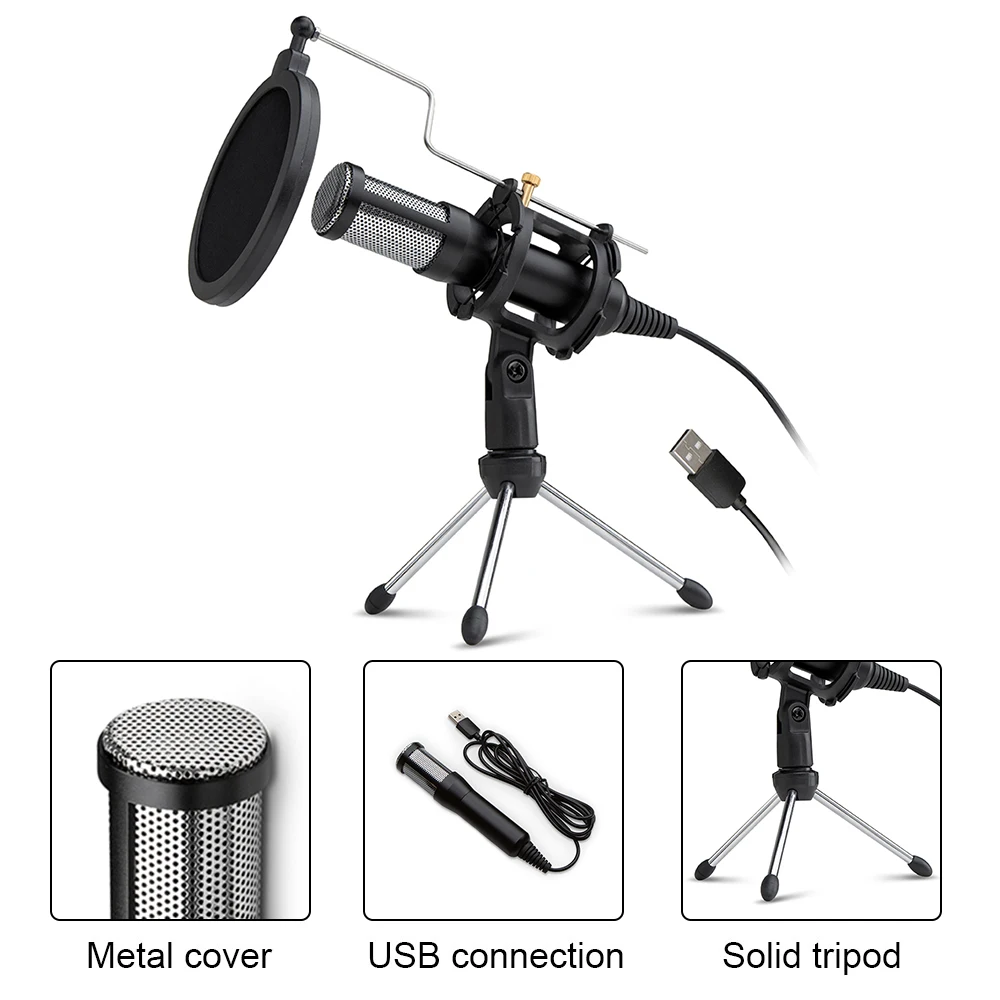 Микрофон USB PC идеально подходит для записи пения и заметной музыки, вокальных выступлений, позволяет наслаждаться пением и частыми онлайн-коммуникациями в любое время и в любом месте. Подходит для Windows, Mac, iOS, Android OS, универсально совместим с планшетами, ноутбуками, смартфонами и т. д. Не требуется внешний драйвер и питание, просто подключите его и перейдите для мгновенного воспроизведения звука. Полностью изысканный качественный Металлический корпус, внешний вид благородный, изящный и долговечный. Компактный размер, легко носить в любом месте.