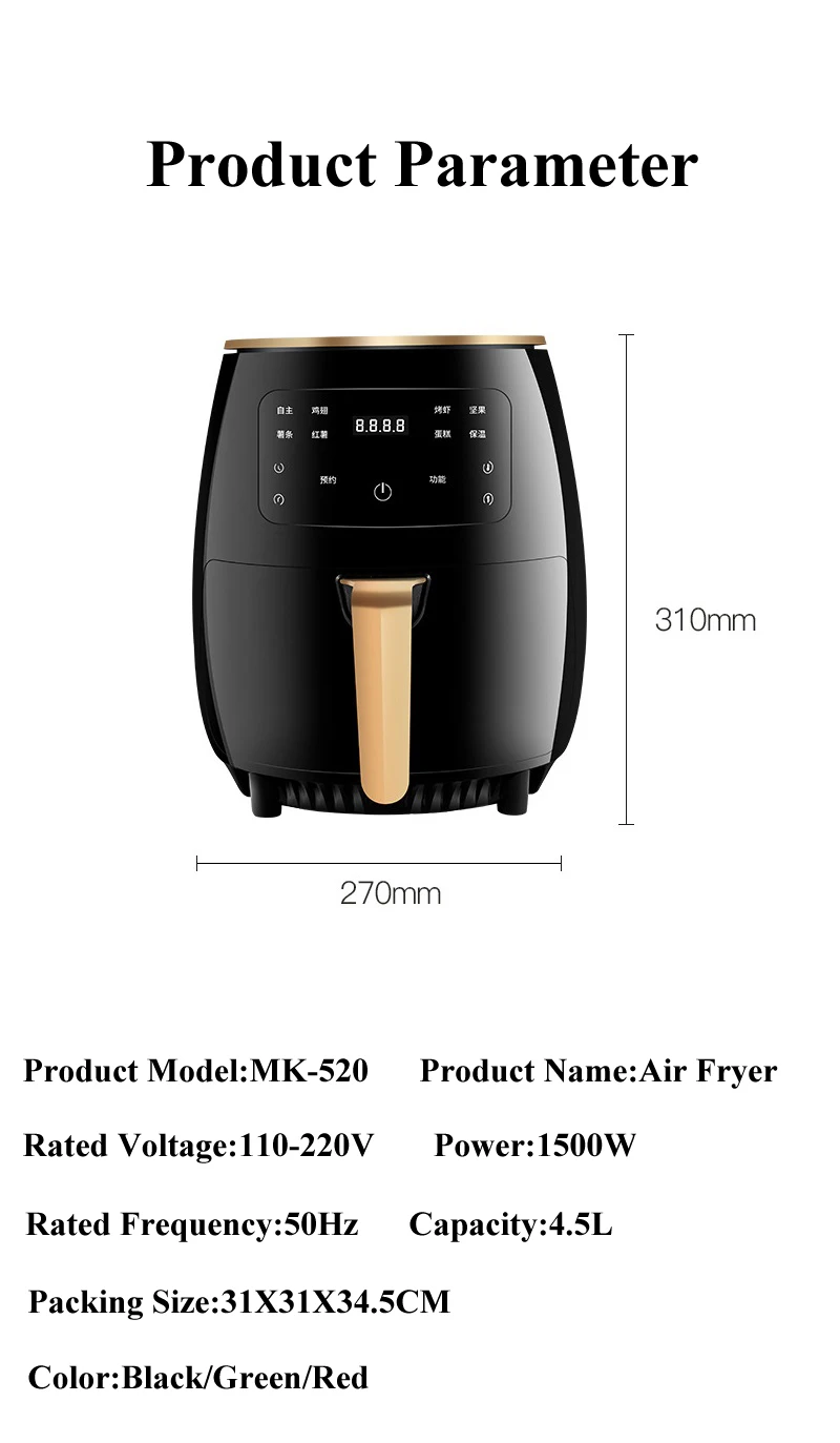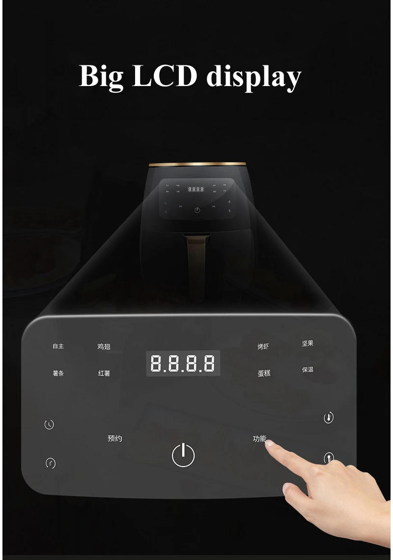 Воздушная фритюрница, тостер, конвекционная жаровня, цифровой ЖК-экран, жареная еда с тремя цветами, красный, зеленый, черный