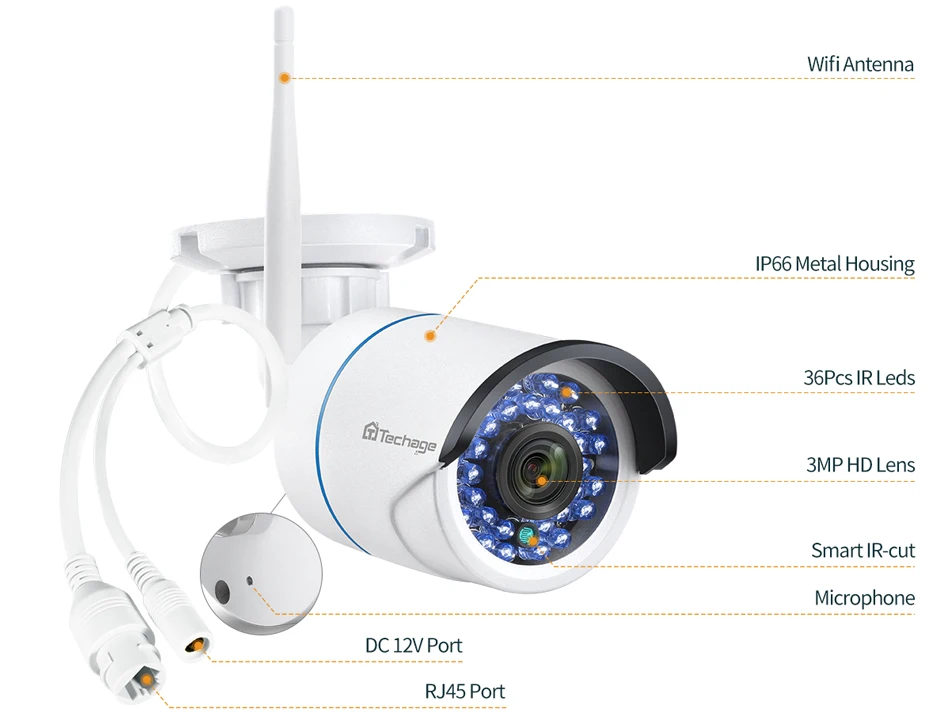 TechageБеспроводная ip-камера 3MPДля комплектов беспроводных систем видеонаблюдения