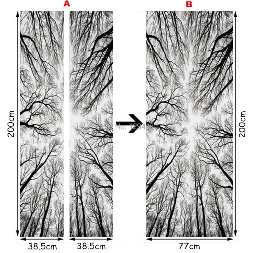 О: весь стикер для двери разрезается на 2 половинки (38,5*200 см * 2 шт.) для упаковки, для легкой доставки и наклеивания и снижения стоимости доставки. Его можно приобрести полностью (77*200 см * 1 шт.) посылка, но стоимость упаковки и вес посылка увеличиваются (материал упаковки-трубка из твердой бумаги), для обоснованного увеличения цены потребуется. Перед размещением заказа, пожалуйста, свяжитесь с нами.