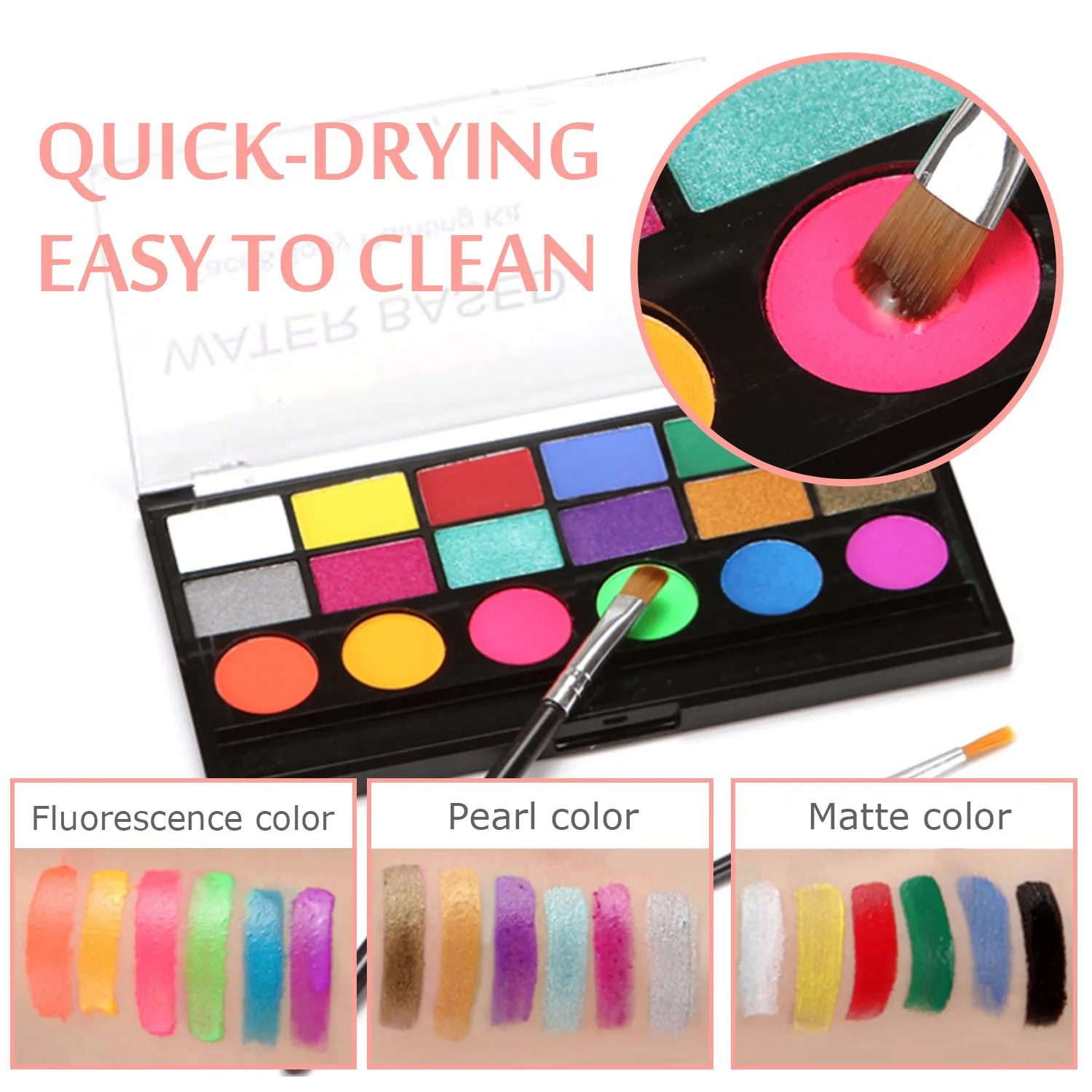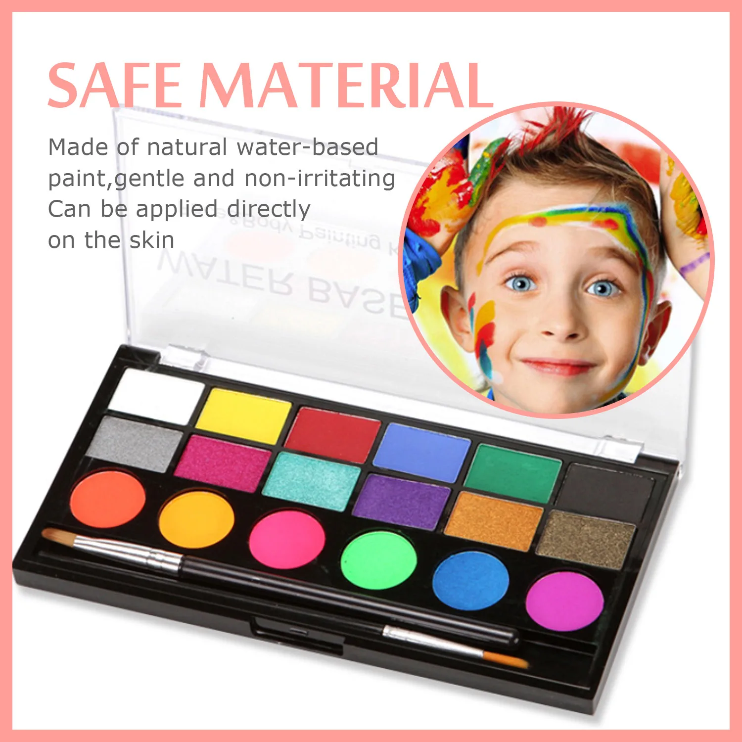 Безопасный материал:Изготовлен из натуральной краски на водной основе, нетоксичный, гипоаллергенный, мягкий и не раздражающий, может быть нанесен непосредственно на кожу. Быстросохнущие, легко чистятся.