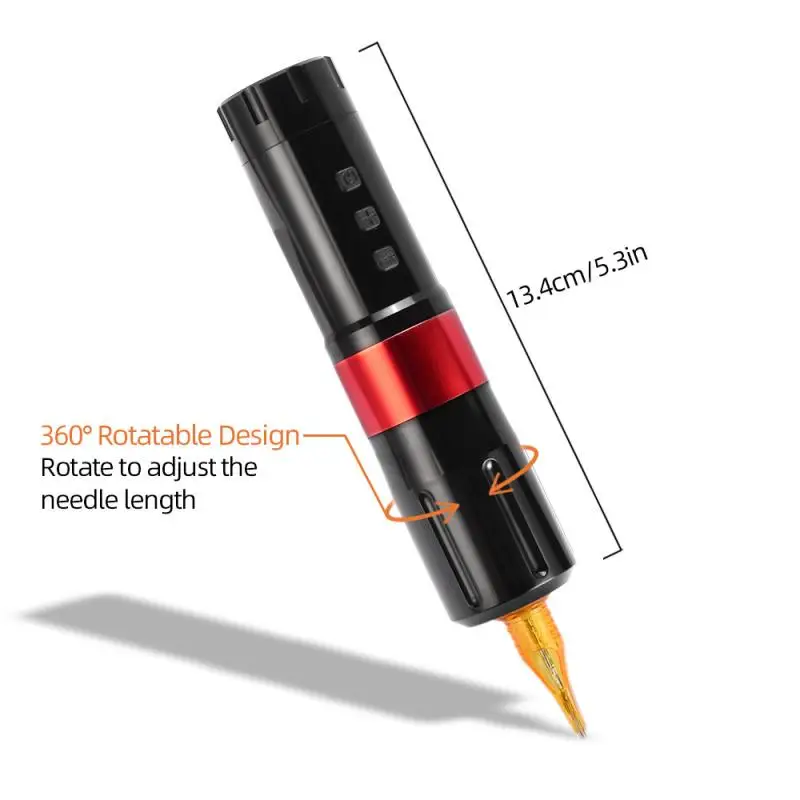 Компактную машинку «все в одном» можно положить в карман держателя для карт, а татуировщик может татуировать в любое время и в любом месте.