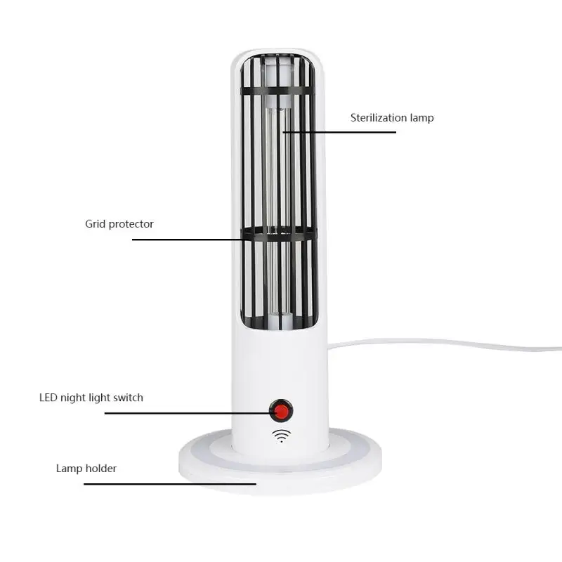 - NOTE,When the germicidal lamp is turned on, please leave the place of use immediately and keep the environment without any animals and plants. Do not look directly at the germicidal light source. Absorbing too much ultraviolet light can cause skin irritation and conjunctival damage.