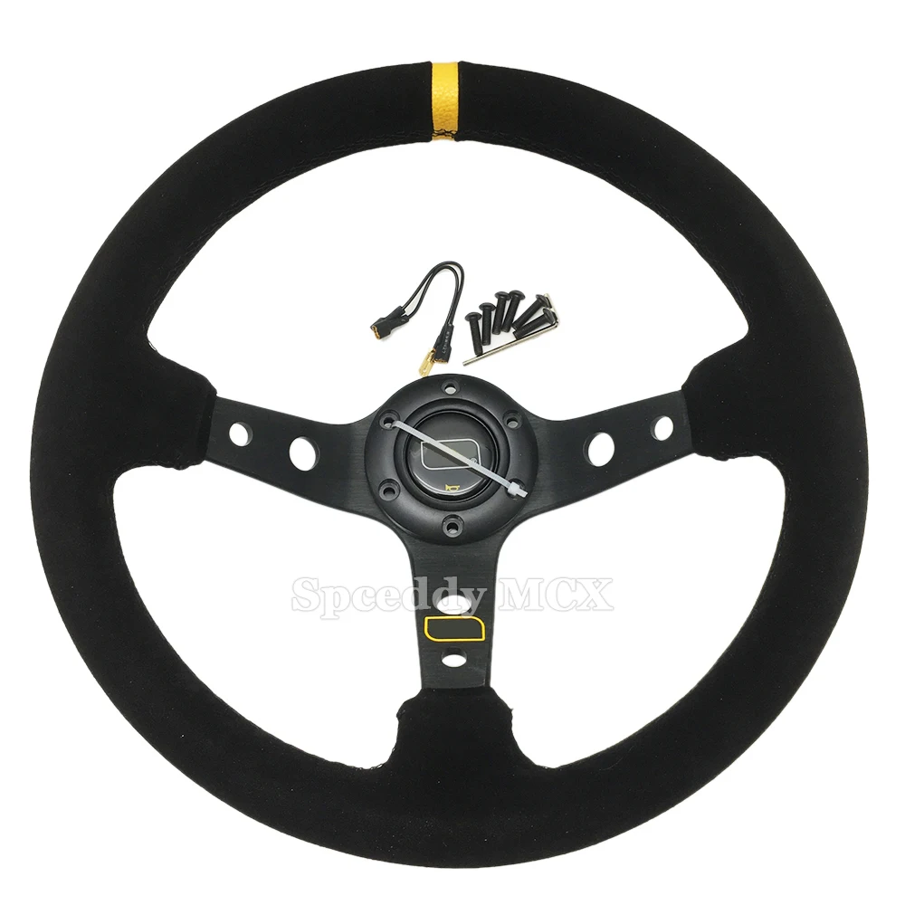 Универсальный спортивный руль, 14 дюймов, 350 мм, гоночный руль, гоночный руль, модификация, глубокое блюдо, 90 мм, гоночные колеса