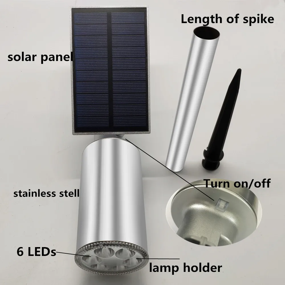 Батарея: 3,7 V 18650 Светодиод: 6 шт. SMD Время работы: 6-10 часов Выход: 30/50 люмен два уровня Диапазон датчика: 90 градусов и 4 ~ 6 метров расстояние Материал корпуса: нержавеющая сталь + пластик Гарантия: 1 год Светильник Цвет: белый/теплый белый/холодный белый Особенности: 1. Регулируемый светильник и солнечная панель-угол солнечного точечного светильник и солнечная панель можно отрегулировать, чтобы получить идеальный угол освещения и лучший эффект солнечной зарядки 2. Водостойкий-IP65 Водонепроницаемый, подходит для освещения подъездных путей, дорожек, тротуаров, газонов, садов, солнечных огней Aptoyu на открытом воздухе, легко справляется со всеми видами погоды. 3. Нержавеющая сталь-более прочный, чем материал ABS