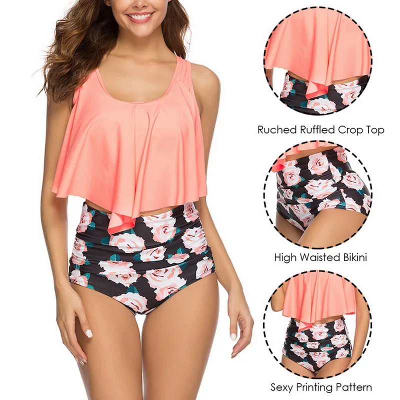 Swimwear Women Bikini 2019 Mujer High Waist Swimsuits Ruffles Bikinis Swimming Suit For Womens Tankinis Bathing Suits Biquini