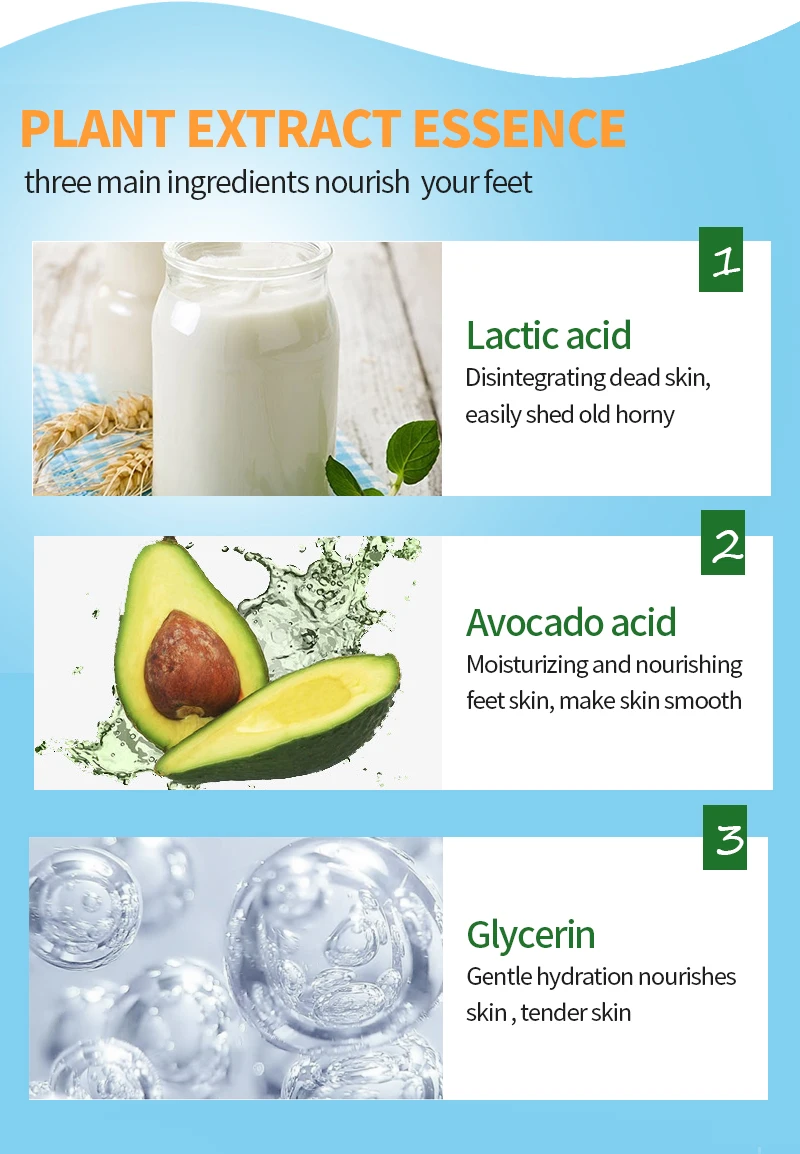 1. Вымойте и Замочите ноги горячей водой, а затем высушите ноги. 2. Используйте ножницы, чтобы вырезать Уплотнение Маски для ног посылка. 3. Носите маску для ног, мы рекомендуем носить пару нормальных носков снаружи, чтобы обеспечить достаточный контакт с эссенцией. 4. Снимите маску для ног через 35-95 минут, затем очистите ноги. 5. Большинство людей начинают очищать омертвевшую кожу после 48 часов использования, но из-за различных типов кожи кому-то может потребоваться 2-3 пары, пожалуйста, используйте маску для ног снова 48 часов позже. 6. Не используйте маску, если у вас есть активный порез или ран. 7. Мы предлагаем вам замочить ноги горячей водой после 48 часов использования.