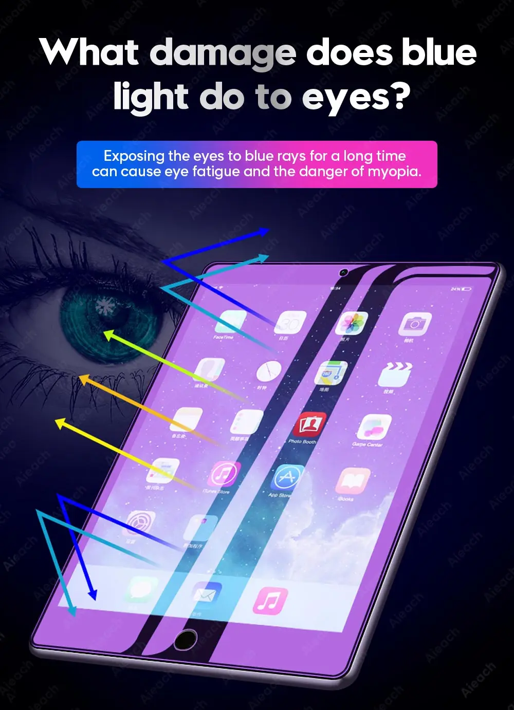 Exposing the eyes to blue rays for a long time can cause eye fatigue and the danger of myopia.