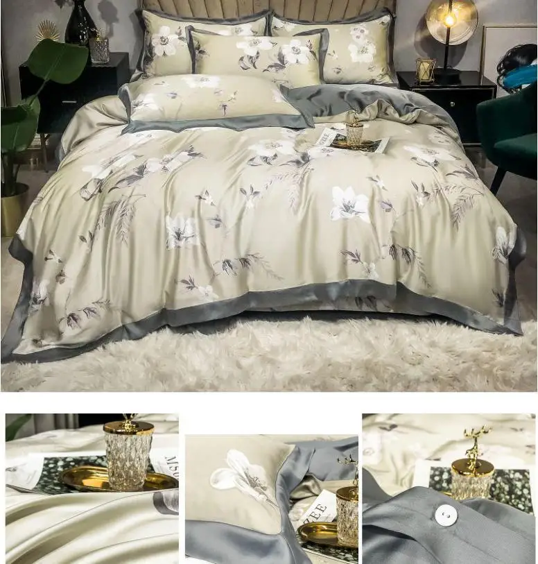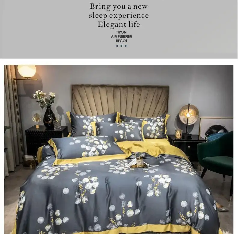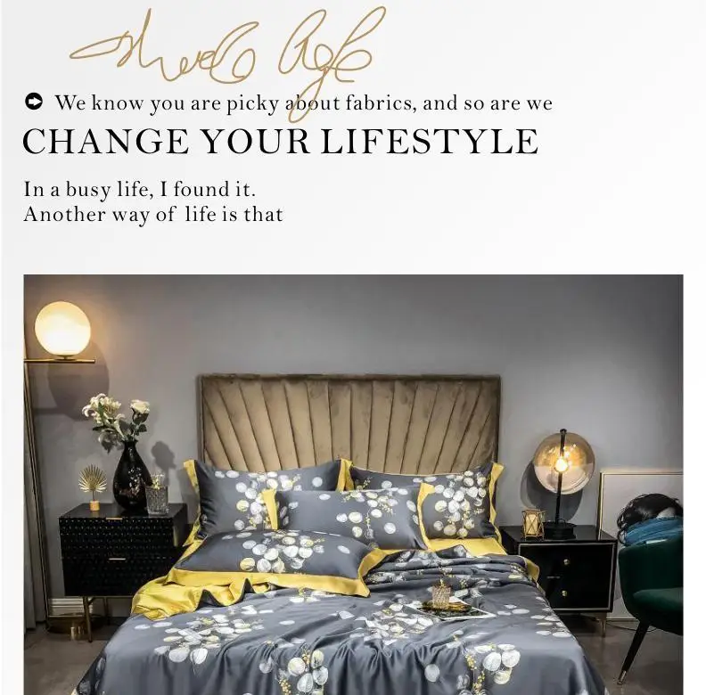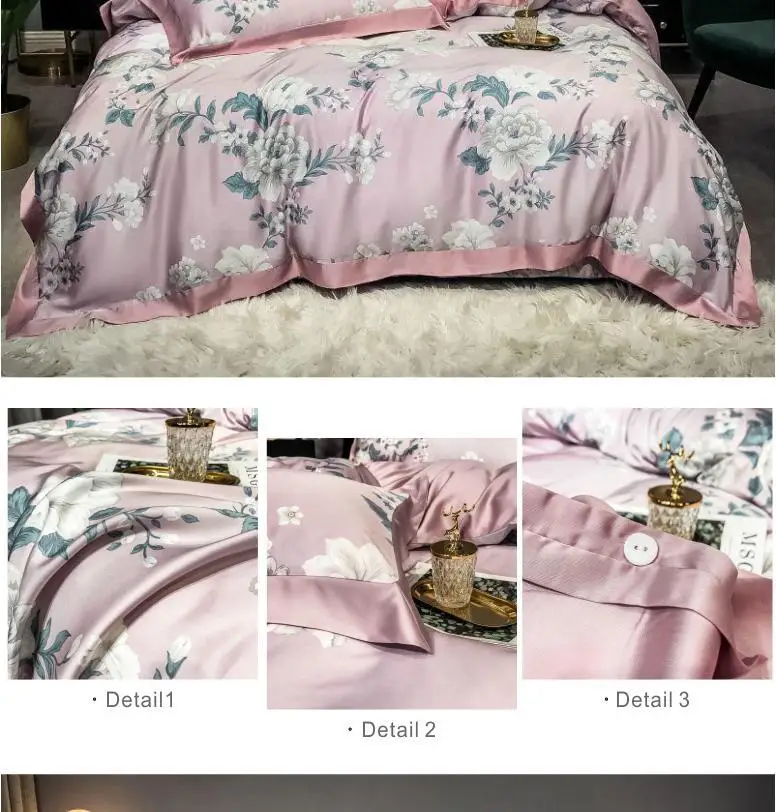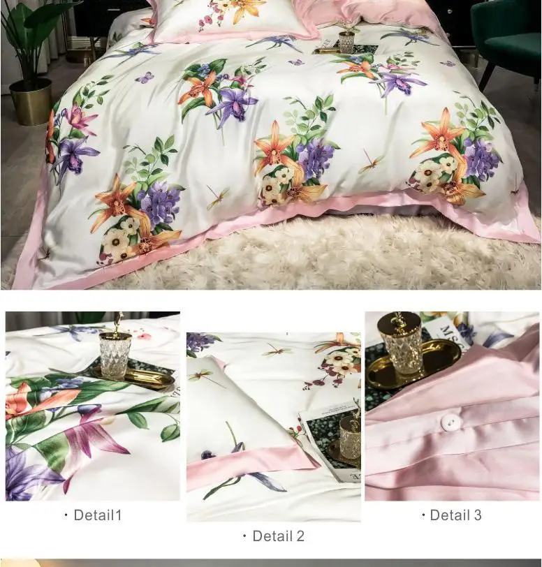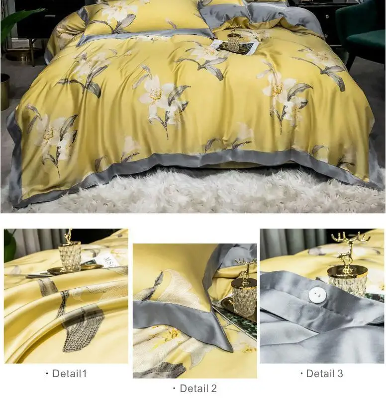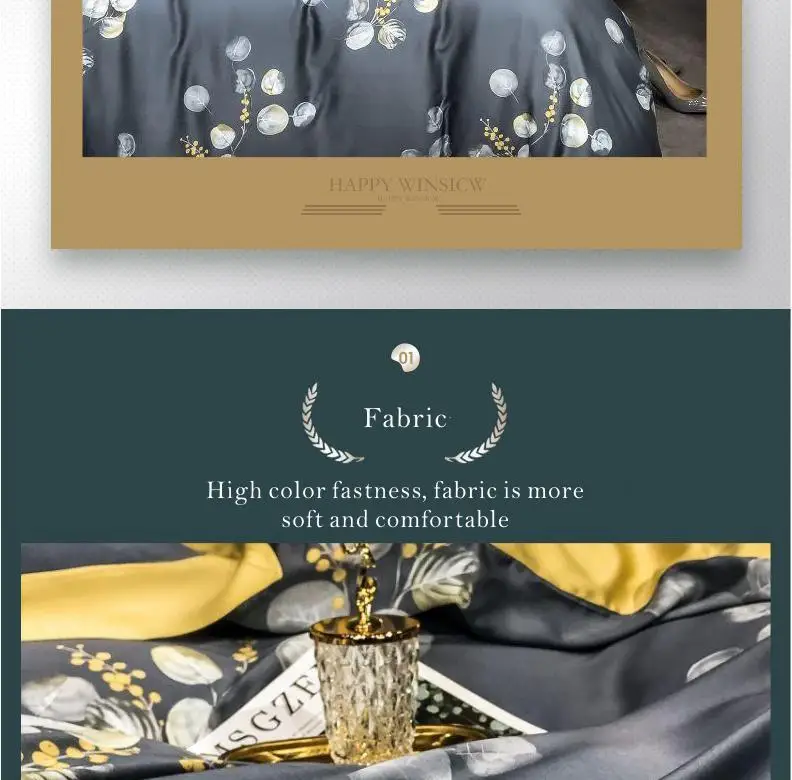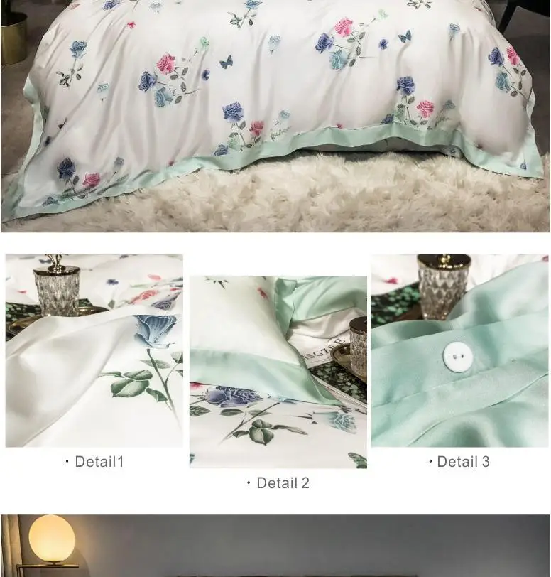 Роскошный 100% шелк Вишневый серый комплект постельного белья с принтом пододеяльник набор шелковистая кровать набор наволочка Королева Король Плоский лист
