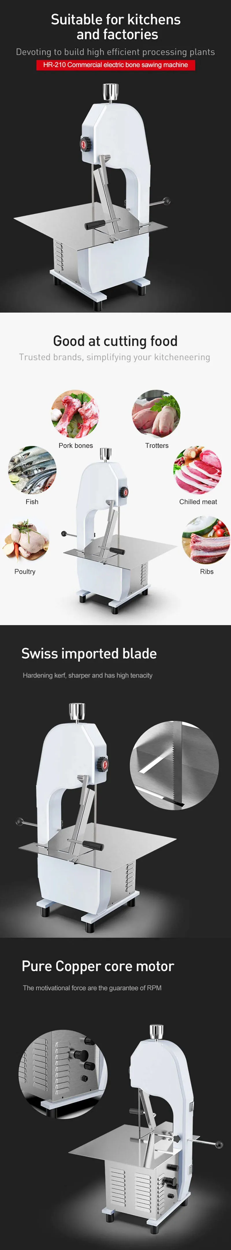1. Машина имеет большую конструкцию колеса, хорошее сочетание продуктов, ручка регулировки натяжения может легко демонтировать полотно пилы. 2. Встроенное водонепроницаемое защитное устройство. Когда внешняя крышка станка откроется, она перестанет работать. 3. Эффективный, устойчивый ход, простота в эксплуатации, легко моется. 4. Скамья и пильное полотно изготовлены из высококачественной нержавеющей стали, прочные и долговечные, что подтверждает международный стандарт санитарии. 5. Можно резать кости, замороженное мясо, рыбу и т. д. широко используется на кухне, в ресторане и во многих местах переработки пищи.
