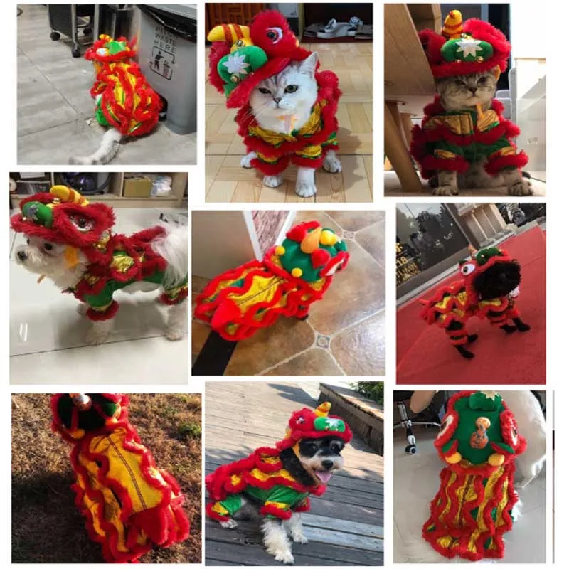 Забавная Одежда для собак на Хэллоуин, новогодний костюм для домашних животных, китайский костюм дракона для танцев, Льва, собаки, вечеринки, красного цвета, праздничная одежда для счастливого кота