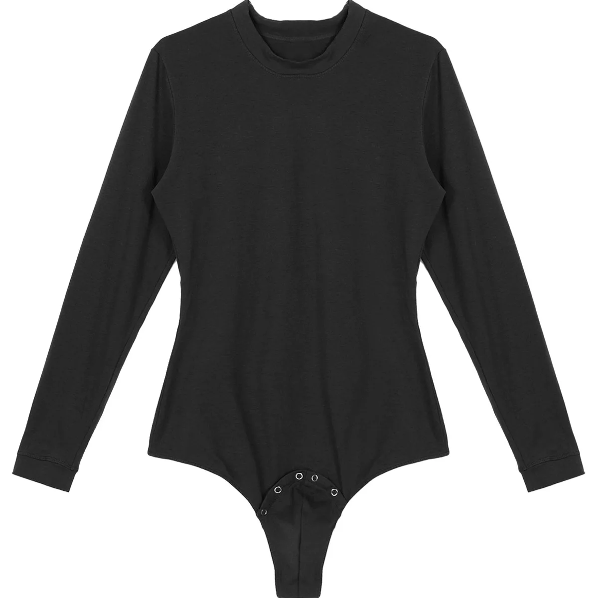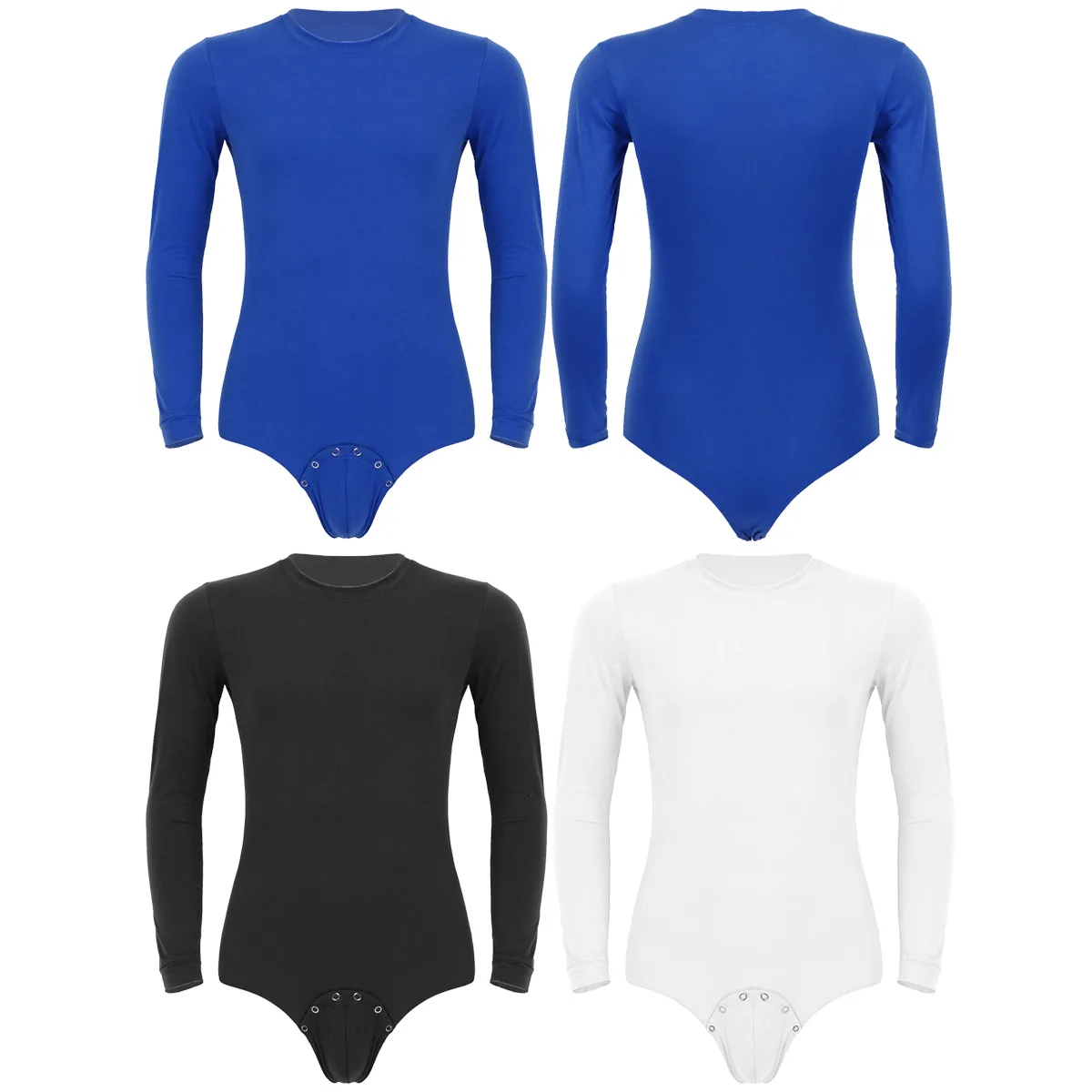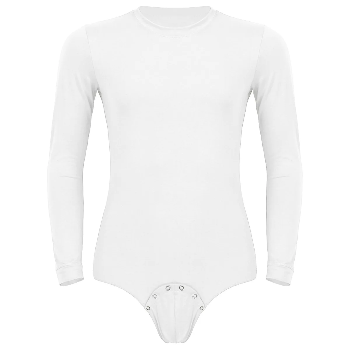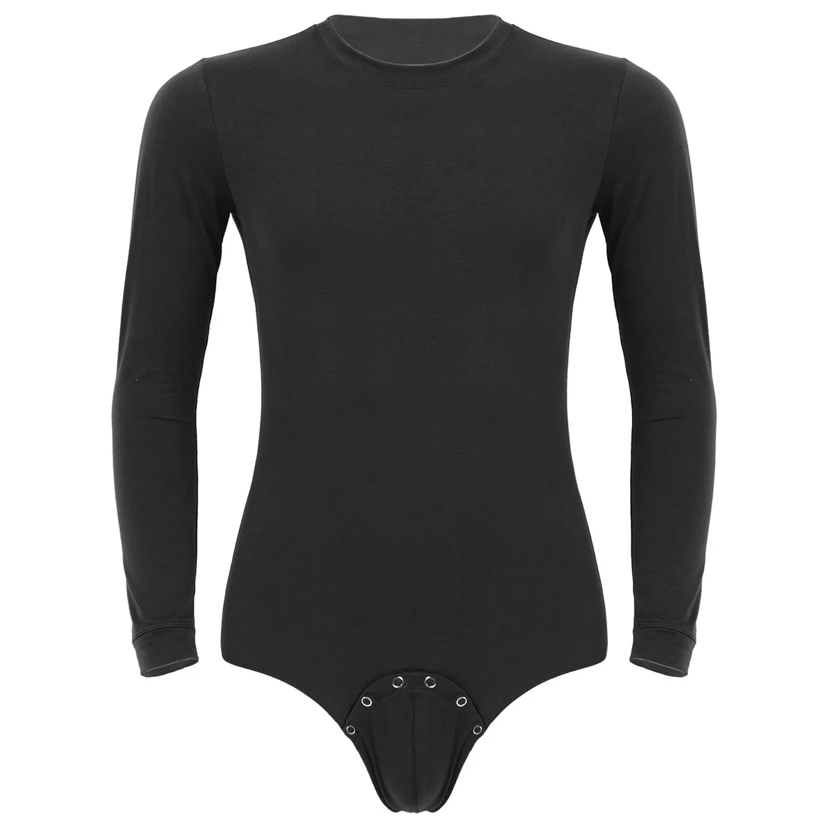 С длинными рукавами и круглым вырезом, Мужская футболка с шестью кнопками в промежности, сплошной цвет.
