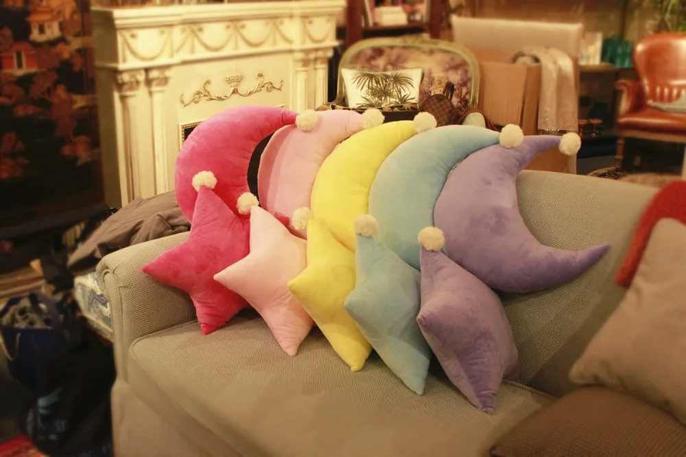 Однотонная серия неба, плюшевая подушка, наполненная луной, звезда, плюшевые игрушки, мягкая подушка, красивый диван, подушка Kawaii, рождественский подарок для девочки