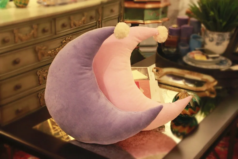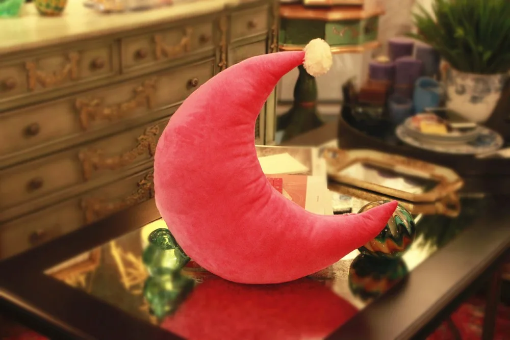 Материал: мягкий плюш Наполнитель: полипропиленовый хлопок Размер: Star-45x45cm Moon-43x38cm Цвет: красный/розовый/зеленый/желтый/фиолетовый Применение: для подарков/для сна/для украшения
